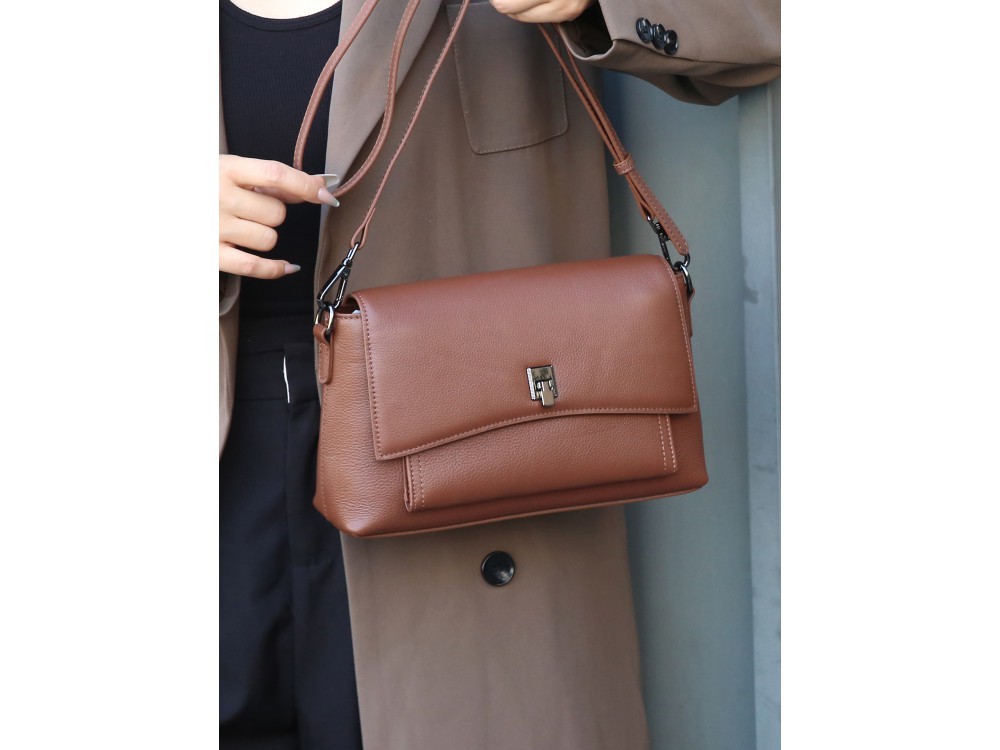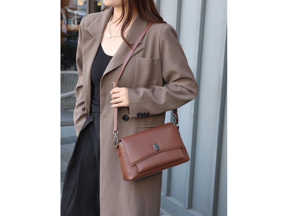 Размер: 21/6/15 Вес товара без упаковки:  0,4 Состав: натуральная кожа Вид застежки: молния Описание: Сумка кросс-боди. В комплекте кожаный ремень с возможностью регулировки. Два основных отделен... Показать описаниеия. Внутри: два кармана для аксессуаров, один из которых застегивается на молнию. Снаружи: спереди вместительный отдел под клапа ном на магнитной клепке. Сзади: карман для мелочей на молнии. Подходит как под спортивный, так и под классический стиль.