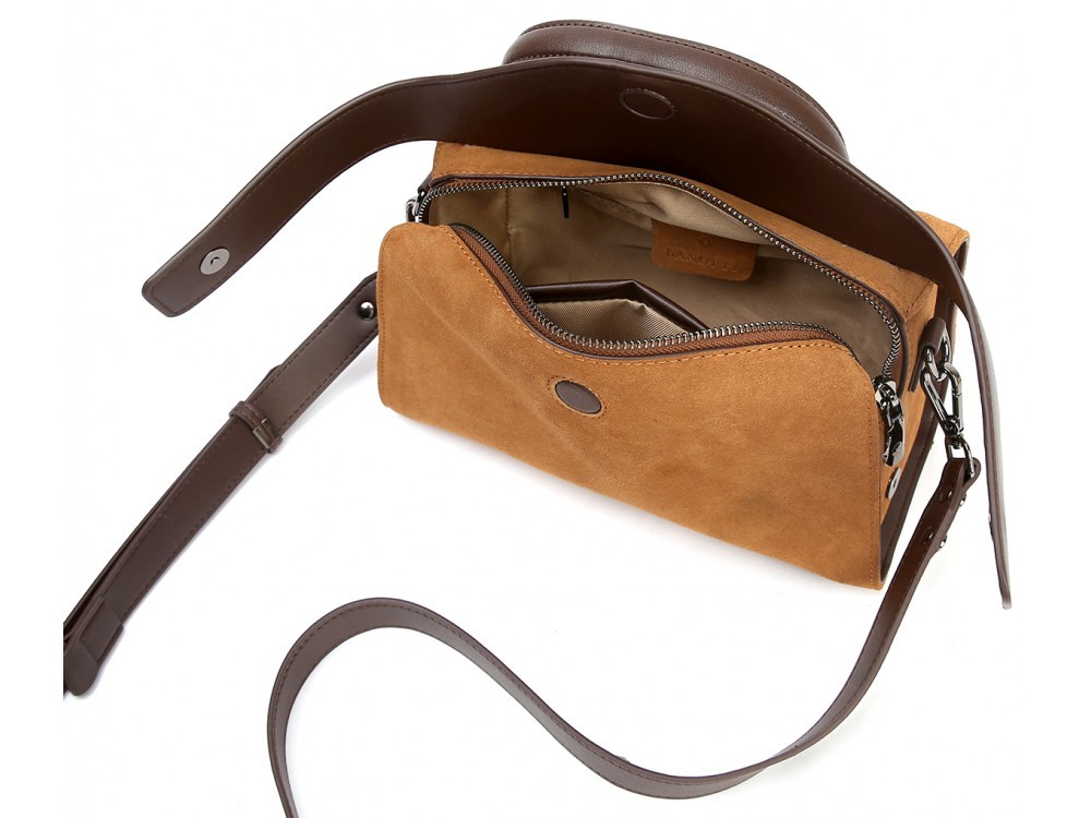 Размер: 25*15*12 Вес товара без упаковки:  0,6 Состав: натуральная кожа/замша Вид застежки: молния + магнитная клепка Описание: Сумка кросс-боди. В комплекте кожаный ремень с возможностью регулир... Показать описаниеовки. Одно основное отделение и карманы для мелочей