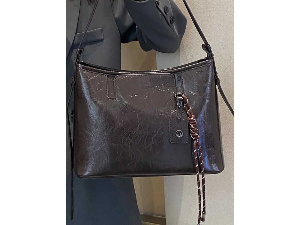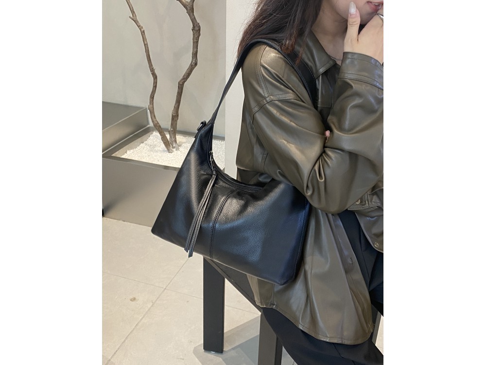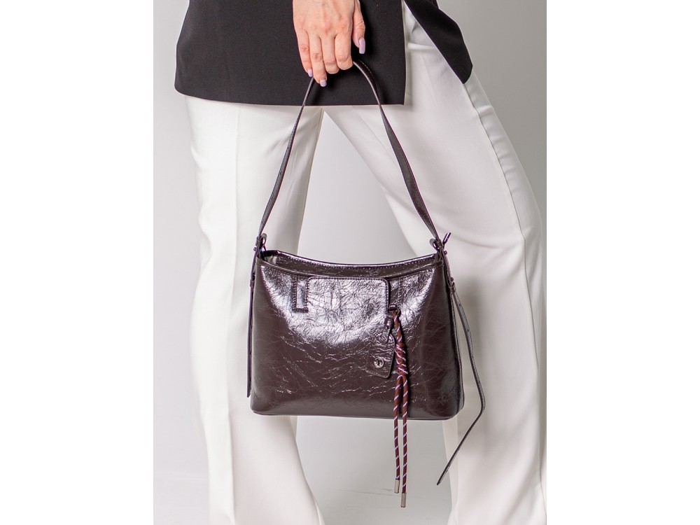 Размер: 36/11,5/15 Вес товара без упаковки Состав: Натуральная кожа Вид застежки: молния Описание: Сумка женская из натуральной кожи с регулиремой ручкой, с помощью которой можно носить сумку как... Показать описание на плече, так и в руках. Внури сумки одно основное отделение с дополнительными карманами для мелочей.
