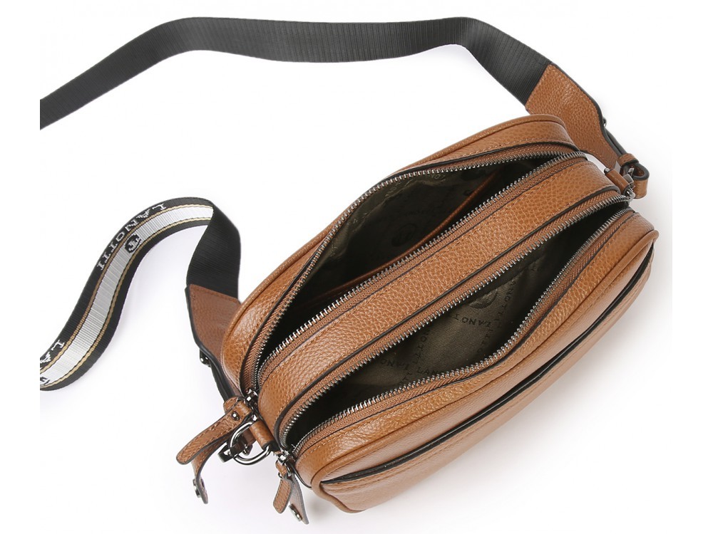 Размер: 12/7/17 Вес товара без упаковки: 0,3 Состав: натуральная кожа Вид застежки: молния Описание: Сумка кросс-боди. В комплекте кожаный ремень с возможностью регулировки. Два основных отделения на ... Показать описаниемолнии. Внутри: карман для мелочей и дополнительный карман на молнии для аксессуаров. Является одним из лидеров продаж благодаря удобству и универсальности! Сумка хорошо держит форму. Подходит как под классический так и под спортивный стиль.