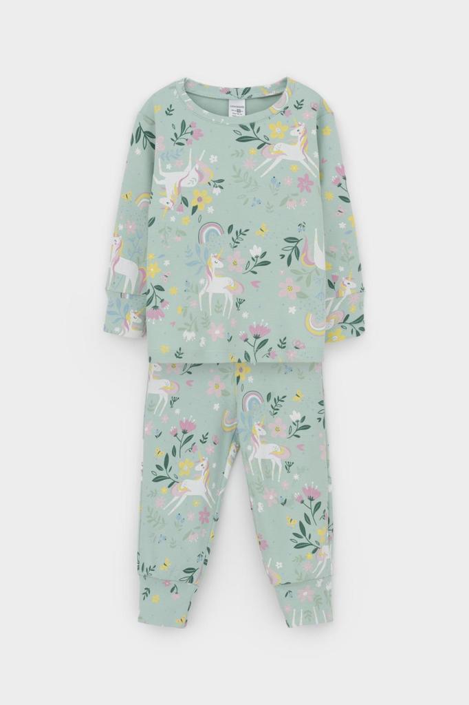 Трикотажная пижама из натурального хлопка. Джемпер с длинными рукавами с эластичными манжетами. У брюк эластичный пояс на резинке. Оригинальная набивка и принт выполнены из стойких, гипоаллергенных те... Показать описаниекстильных красителей. Пижама сохраняет цвет и форму после многократных стирок. Все трикотажные полотна производятся в соответствии с нормами Швейцарского сертификата ЭкоТекс.