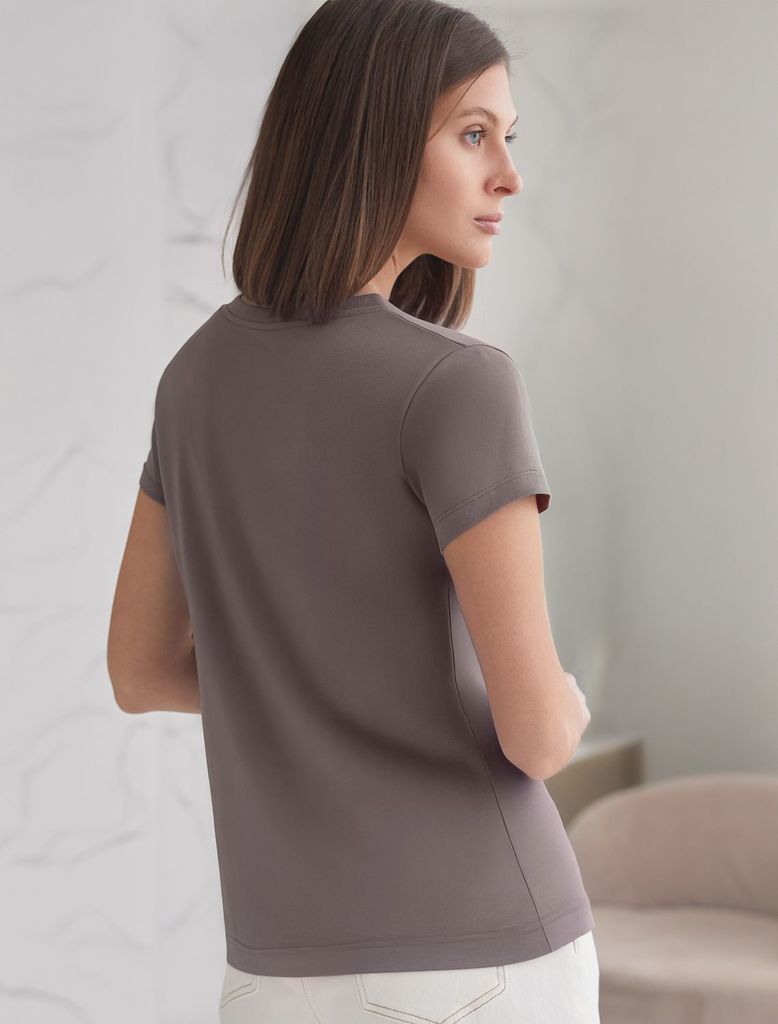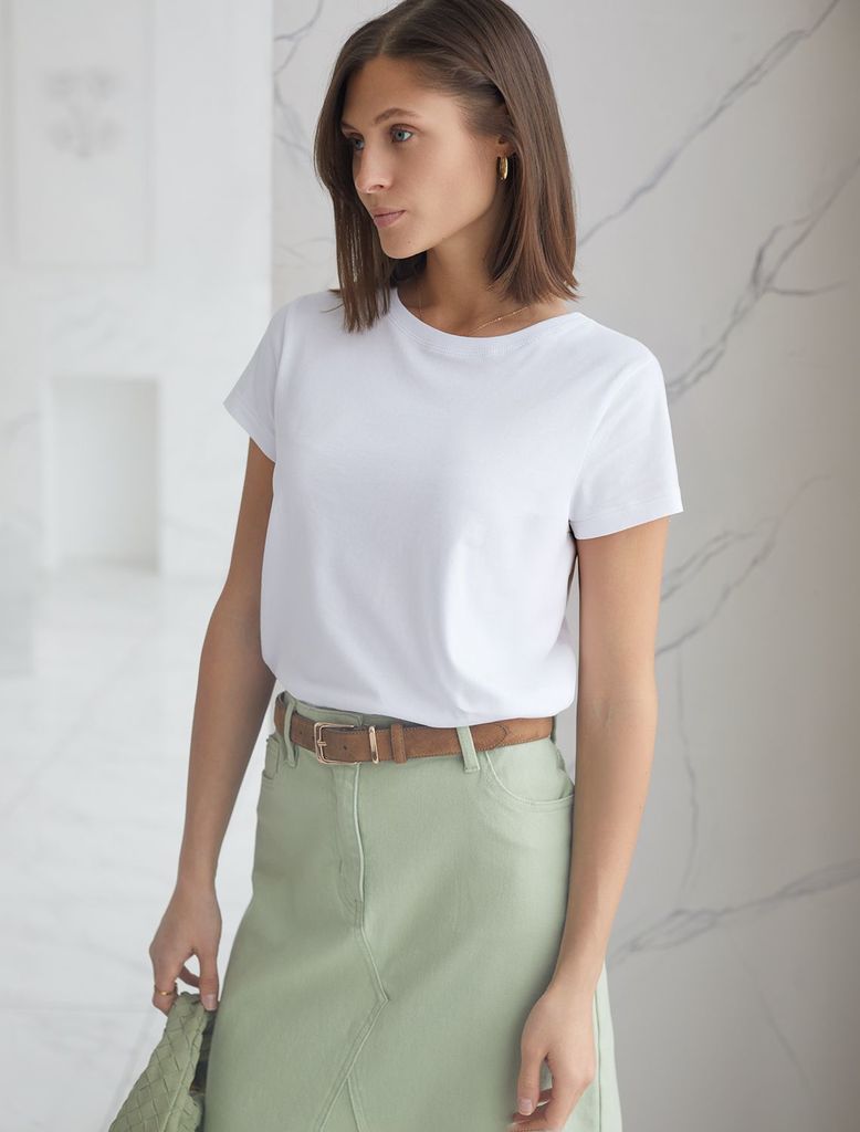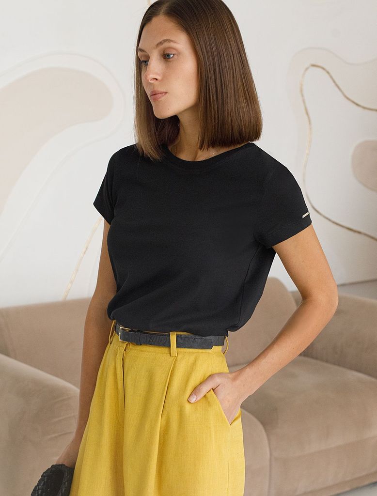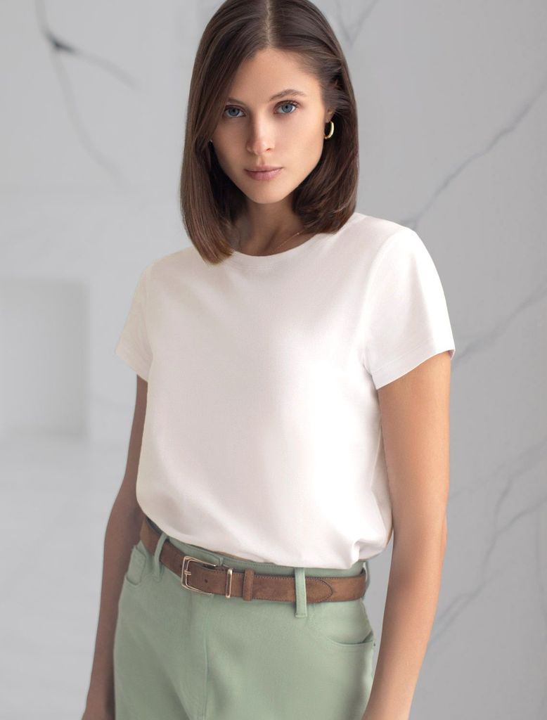 Базовая футболка полуприлегающая из премиального хлопка с эластаномВопросы по товару