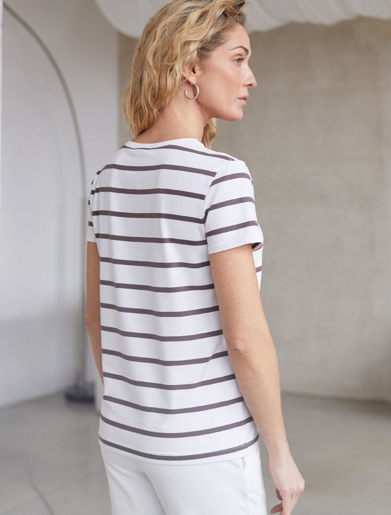 Базовая футболка в полоску полуприлегающая из премиального хлопка с эластаномВопросы по товару