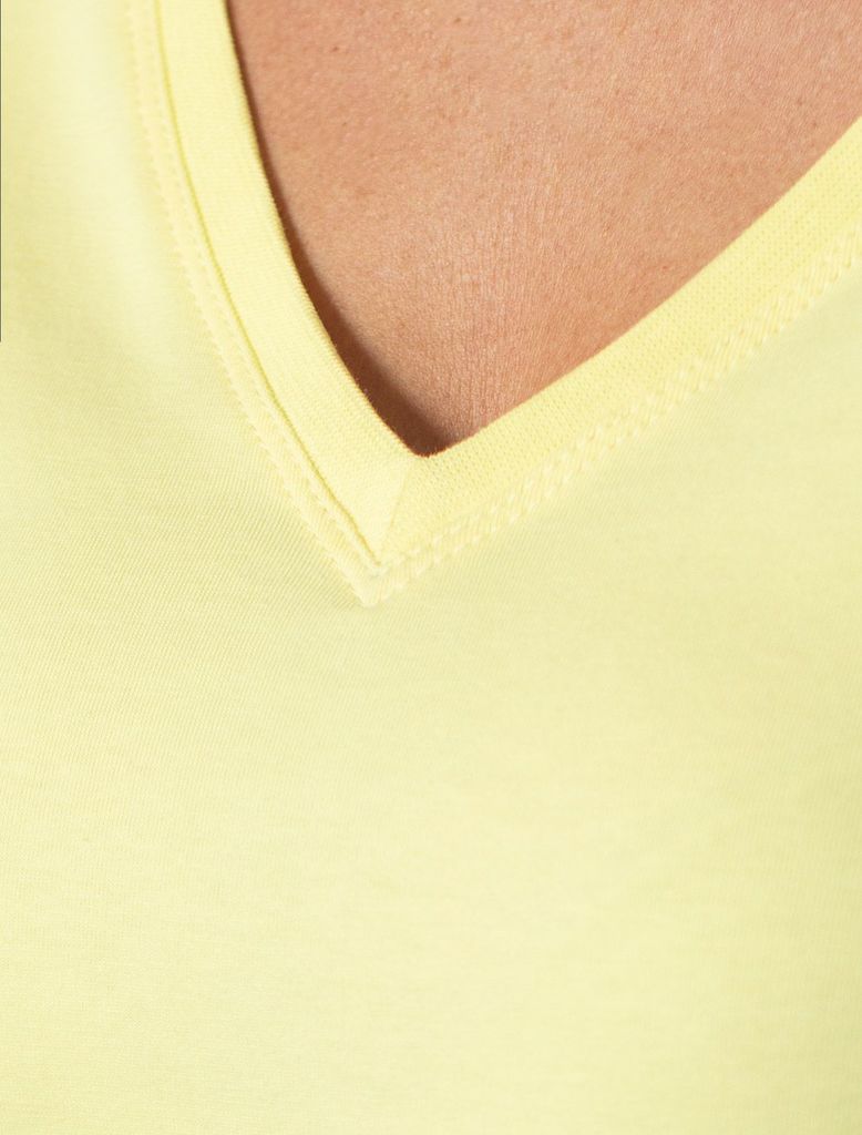 Состав: 92%Хлопок 8%ПУ Плотность: 170 Г/м2 Базовая футболка лимонного цвета с V-образным вырезом выполнена из премиального хлопка. Добавление эластана в состав изделия способствует формоустойчивости. ... Показать описаниеФутболка выполнена из качественного натурального материала, отлично сидит по фигуре и подходит для отдыха и работы. Преимущество этой модели - V-образный вырез, который подчеркивает линию шеи и придает внешнему виду элегантность. Такой фасон гармонично вписывается как в классические, так и в современные гардеробы. Декольте делает изделие более женственным и визуально вытягивает силуэт, создавая ощущение легкости. Такая футболка средней длины и классического кроя идеально подойдет под любую одежду. Модель доступна в больших размерах, чтобы каждая женщина могла подчеркнуть свою индивидуальность.