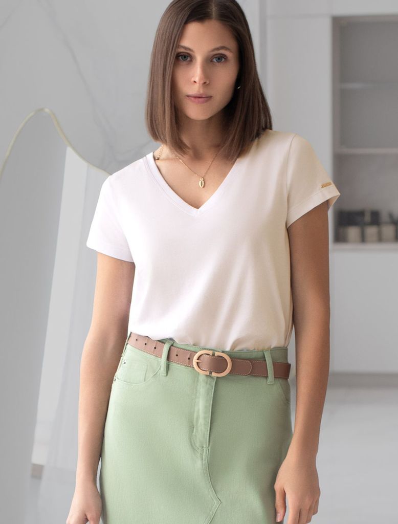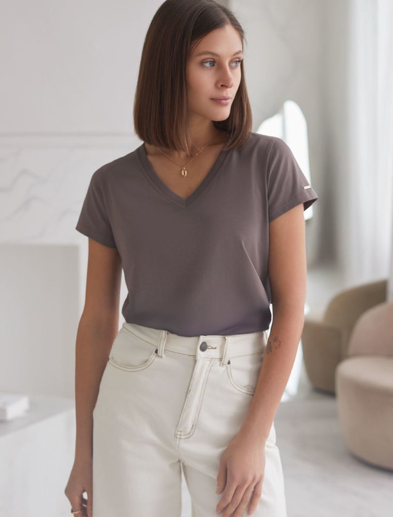 Базовая футболка из премиального хлопка с V образным вырезомВопросы по товару