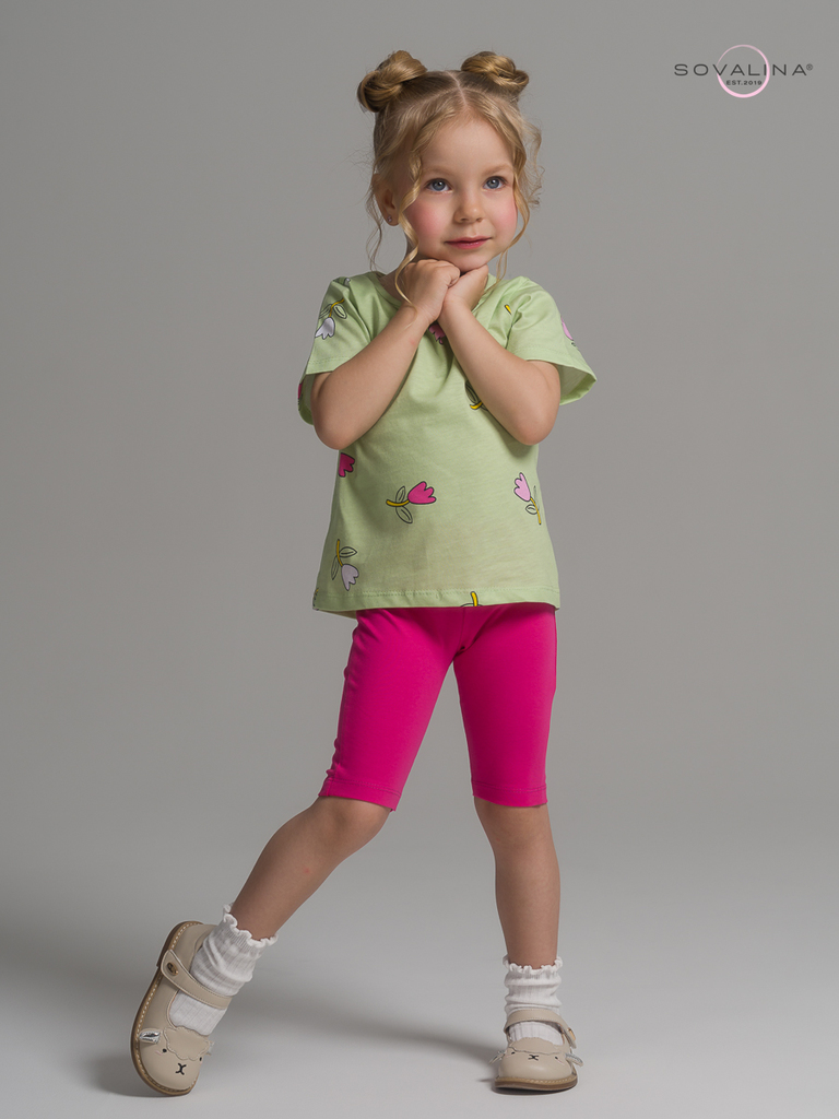 Летний хлопковый комплект для девочки бренда SOVAlina. Детский костюмчик двойка состоит из легкой и красивой футболки с цветочным принтом. Она выполнена из тонкого и прочного трикотажа, что делает ее ... Показать описаниеидеальной на каждый день в садик. Модный спортивный комплект также включает эластичные велосипедки на резинке, обеспечивающие комфортную посадку для танцев или фитнеса. Майка с короткими рукавами и модным дизайном добавляет акцент этому комплекту. Изготовлена из хлопка и обеспечивает максимальный комфорт и свободу движений, подойдет для дома. Этот тонкий и легкий комплект также подходит как форма для тренировок и физкультуры. Он идеально сидит на ребенке и обеспечивает комфорт.