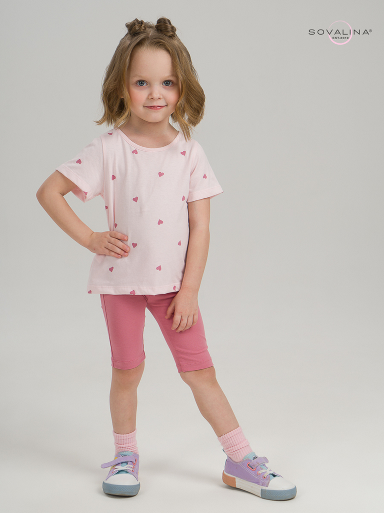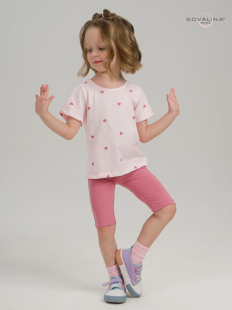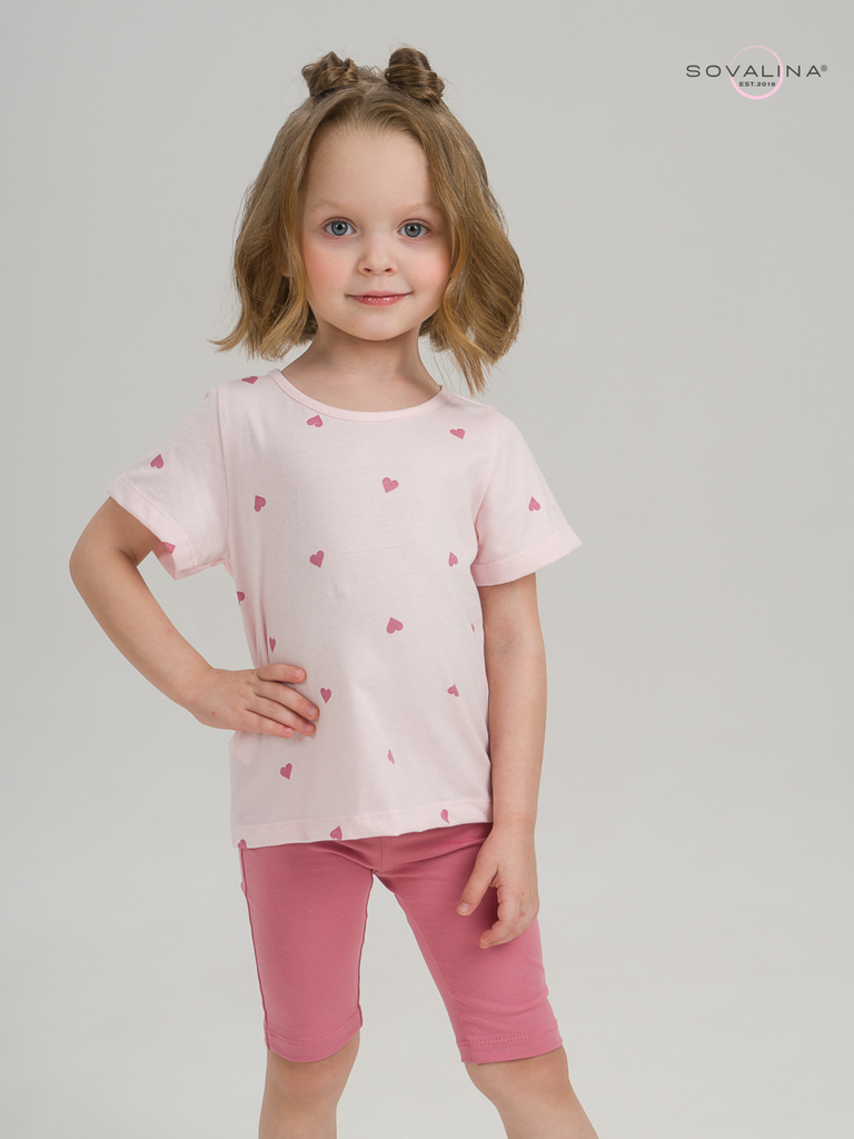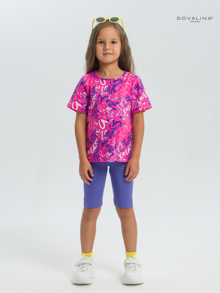 Летний хлопковый комплект для девочки бренда SOVAlina. Детский костюмчик двойка состоит из легкой и красивой футболки с космическим принтом. Она выполнена из тонкого и прочного трикотажа, что делает е... Показать описаниее идеальной на каждый день в садик. Модный спортивный комплект также включает эластичные велосипедки на резинке, обеспечивающие комфортную посадку для танцев или фитнеса. Майка с короткими рукавами и модным дизайном добавляет акцент этому комплекту. Изготовлена из хлопка и обеспечивает максимальный комфорт и свободу движений, подойдет для дома. Этот тонкий и легкий комплект также подходит как форма для тренировок и физкультуры. Он идеально сидит на ребенке и обеспечивает комфорт.