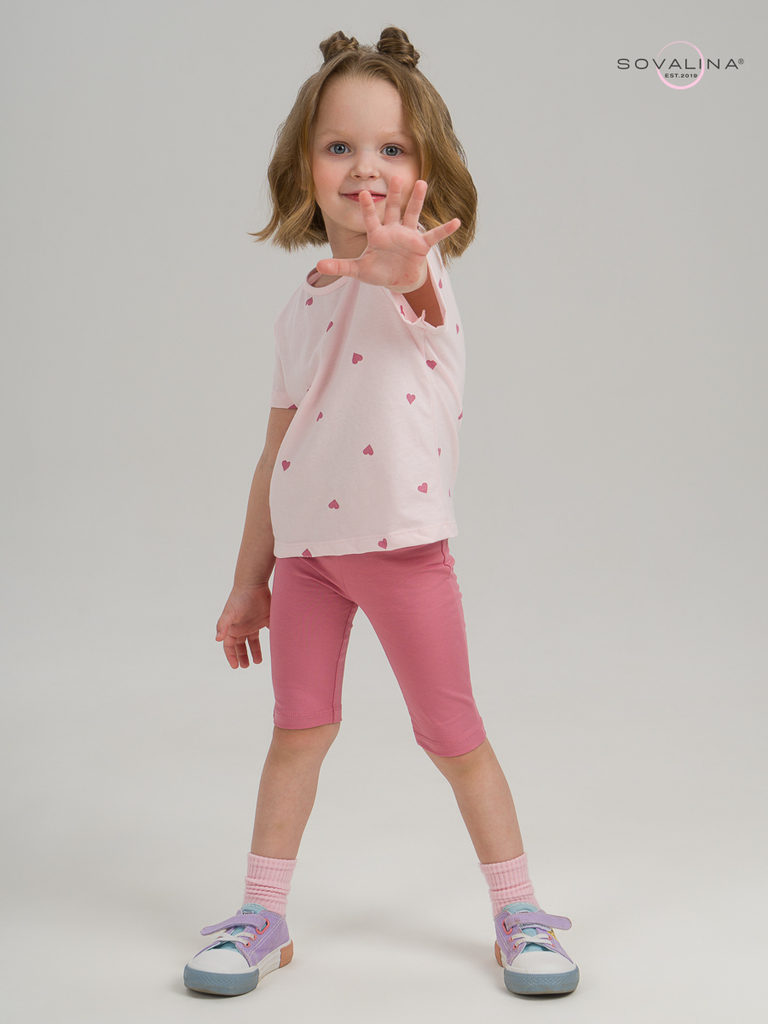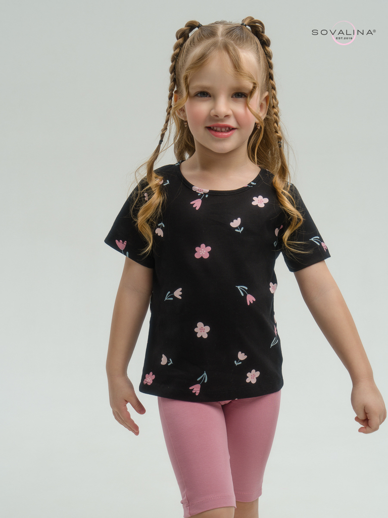 Летний хлопковый комплект для девочки бренда SOVAlina. Детский костюмчик двойка состоит из легкой и красивой футболки с цветочным принтом. Она выполнена из тонкого и прочного трикотажа, что делает ее ... Показать описаниеидеальной на каждый день в садик. Модный спортивный комплект также включает эластичные велосипедки на резинке, обеспечивающие комфортную посадку для танцев или фитнеса. Майка с короткими рукавами и модным дизайном добавляет акцент этому комплекту. Изготовлена из хлопка и обеспечивает максимальный комфорт и свободу движений, подойдет для дома. Этот тонкий и легкий комплект также подходит как форма для тренировок и физкультуры. Он идеально сидит на ребенке и обеспечивает комфорт.