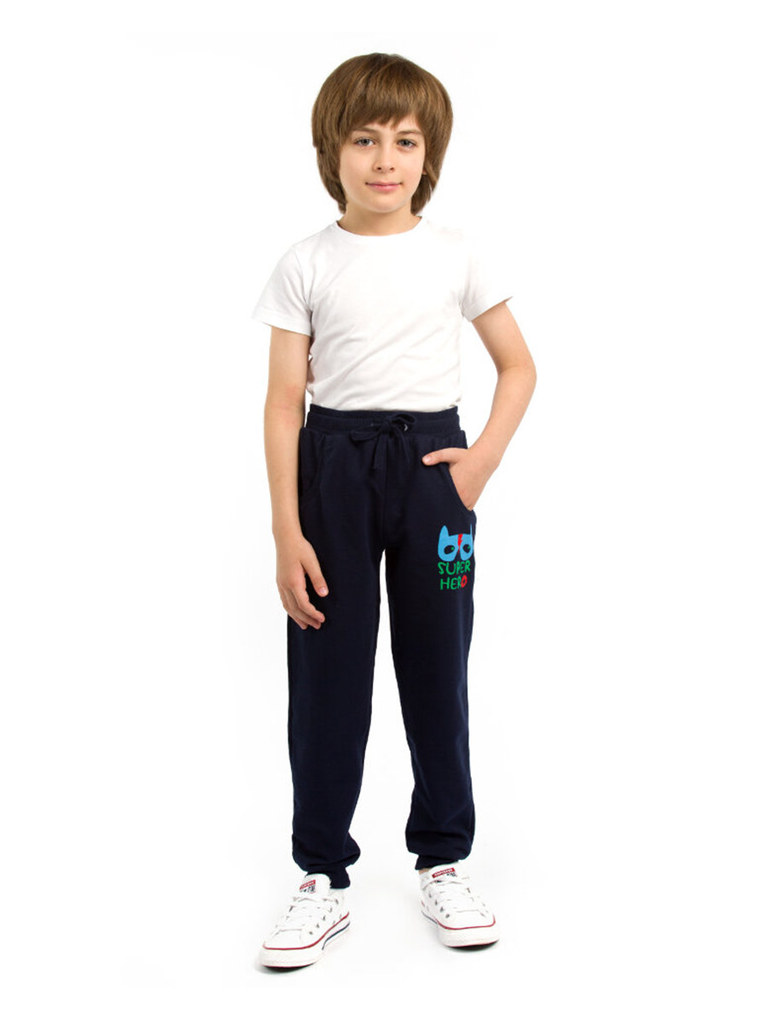 Стильные брюки для мальчика из плотного хлопкового трикотажа - футера 2-нитки. На поясе - удобная широкая резинка с завязками, по бокам - два внутренних кармана. По низу штанов имеются мягкие резинки.... Показать описание Модель украшает классный принт. Замеры модели: Размер 98: длина по внешнему шву 54 см, длина по внутреннему шву 31 см; Размер 104: длина по внешнему шву 58 см, длина по внутреннему шву 34 см; Размер 110: длина по внешнему шву 62 см, длина по внутреннему шву 39 см; Размер 116: длина по внешнему шву 65 см, длина по внутреннему шву 43 см; Размер 122: длина по внешнему шву 69 см, длина по внутреннему шву 46 см. Хлопок 100%