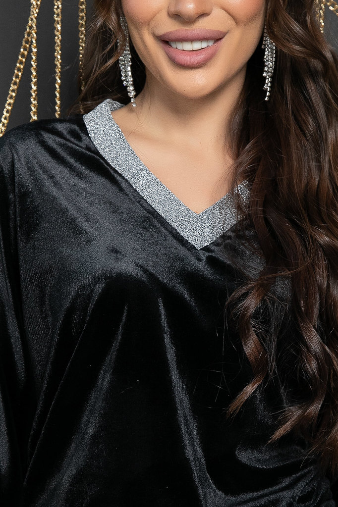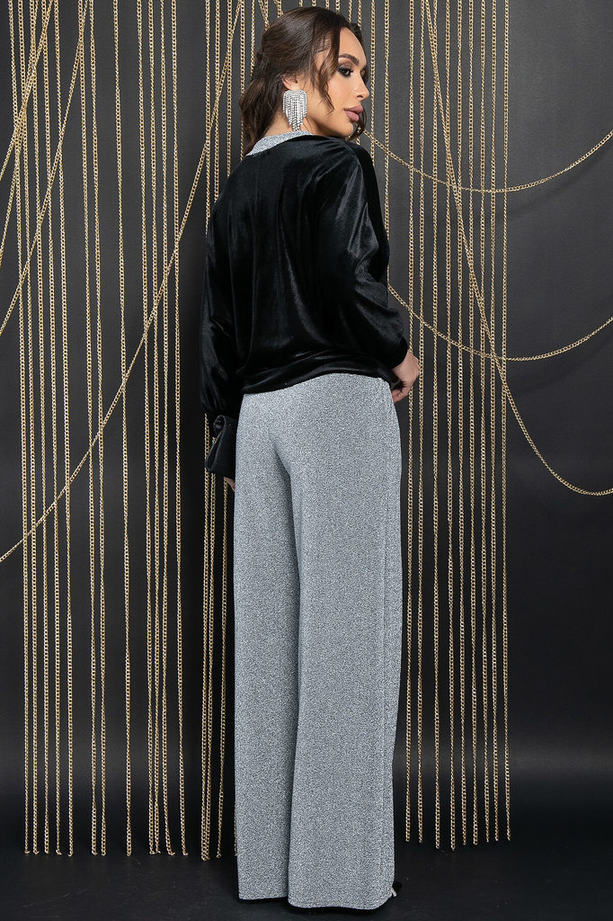 Артикул: К11738. Тип ткани: синтетическая. Состав: 95% полиэстер, 5% эластан. Материал: трикотаж с люрексом и бархат. Цвет: чёрный Принт: отсутствует. Вид застежки: без застёжки. Карман... Показать описаниеы: отсутствуют. Резинка в поясе: есть. Силуэт: свободный. Декоративные элементы: отсутствуют. Длина верха: 44-50/ 58 см, 52-54/ 59 см. Длина брюк: 44-50/ 107 см, 52-54/ 109 см. Размер изделия на модели: 44 Рост модели: 167 см. Этот восхитительный костюм — настоящая находка для любителей комфорта. Джемпер из бархата, свободного силуэта, с V-образной горловиной — это воплощение уюта и стиля. Мерцающие брюки выполнены из той же ткани, что и горловина у джемпера, что придаёт образу завершённость. Этот костюм станет прекрасным выбором как для повседневной носки, так и для торжественных случаев. Уход за изделием: ручная стирка до 30 градусов; нельзя отбеливать; отжим запрещён; гладить при t не более 110 С; гладить с изнанки. Внимание! Рекомендуем ориентироваться на размерную сетку и выбирать свой привычный размер, согласно размерной таблице. *Допуск отклонения длины при массовом производстве 1-3 см является нормой.