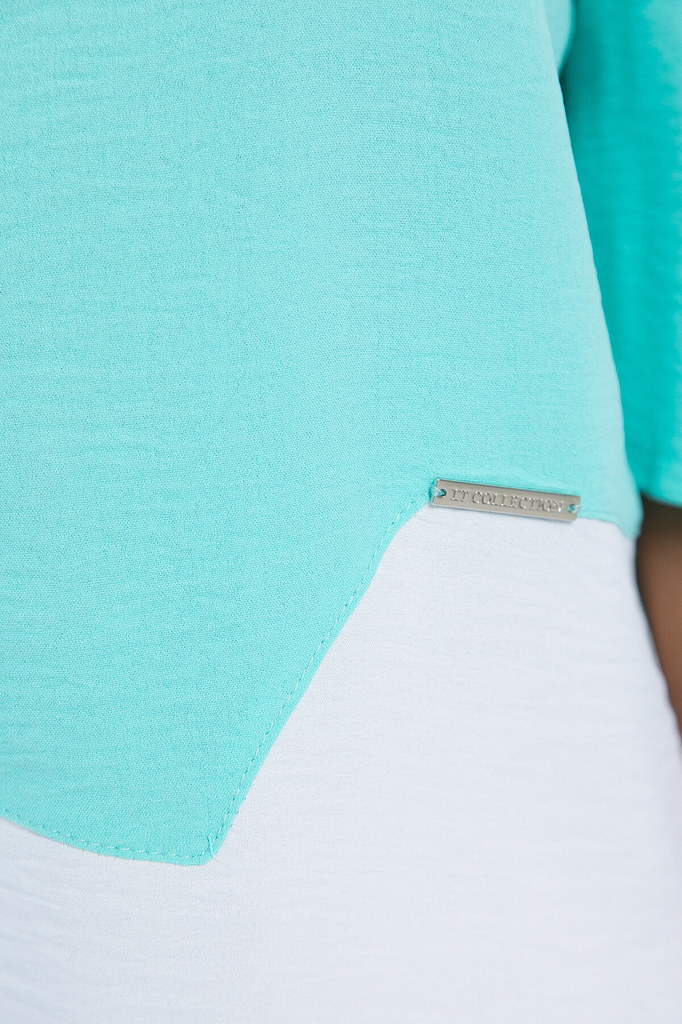 Артикул: К13027-8М. Тип ткани: смесовый. Состав: 80% вискоза, 20% полиэстер. Материал: плательный "Сингапур". Цвет: мятный. Принт: отсутствует. Вид застежки: без застёжки. Карманы: есть... Показать описание. Резинка в поясе: есть. Силуэт: свободный. Декоративные элементы: металлический логотип. Длина верха по спинке от верхней точки плеча: 44/ 68 см, 46-48/ 69 см, 50-52/ 70 см, 54-56/ 71 см. Длина брюк по боковому шву: 44-56/ 101 см. Размер изделия на модели: 44 Рост модели: 168 см. Универсальный, лёгкий и стильный брючный комплект, состоящий из свободной блузы и прямых брюк. Блузка двух цветов с фигурной средней частью по переду. С разрезами по бокам. Рукава с вырезами на плечах не оставят без внимания окружающих. Брюки по талии на резинке обеспечивают идеальную посадку, по бокам расположены карманы. Свободный крой костюма позволяет чувствовать себя комфортно, прекрасно сочетается с обувью на плоской подошве и на каблучке. Уход за изделием: ручная стирка до 30 градусов; нельзя отбеливать; отжим запрещён; гладить при t не более 110 С; гладить с изнанки. Внимание! Рекомендуем ориентироваться на размерную сетку и выбирать свой привычный размер, согласно размерной таблице. *Допуск отклонения длины при массовом производстве 1-3 см является нормой.
