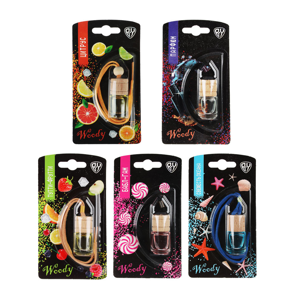BY Ароматизатор подвесной Woody, бабл гам, океан, цитрус, тутти фрутти, парфюм, 5 мл