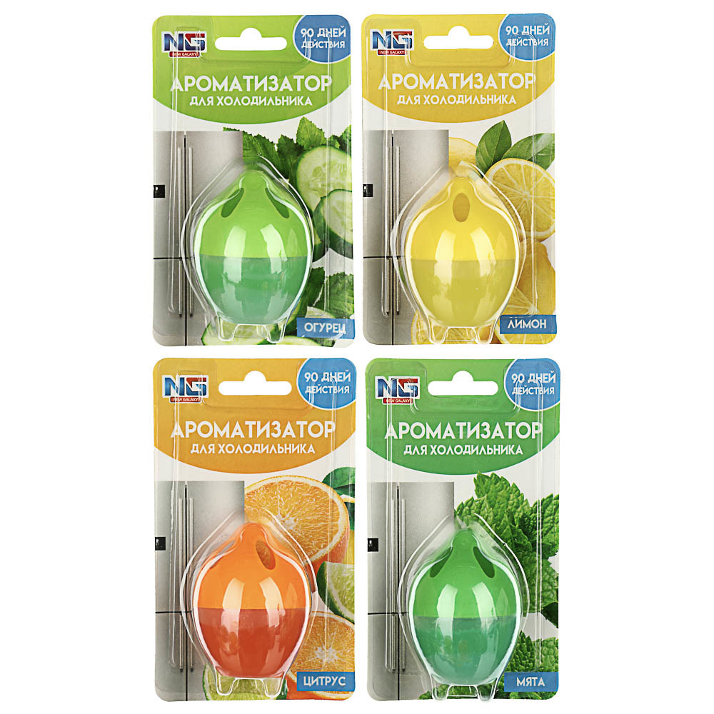 NEW GALAXY Ароматизатор для холодильника, 4 аромата (лимон, мята, огурец, цитрус)