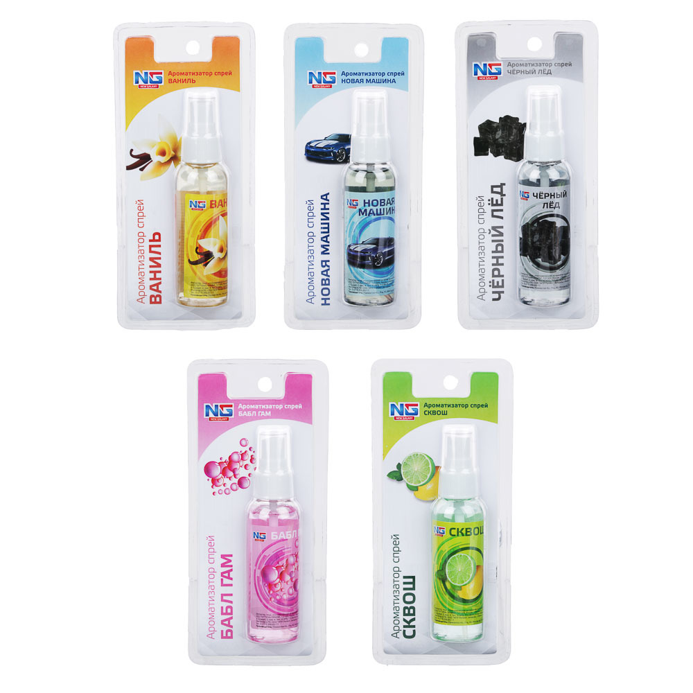 NEW GALAXY Ароматизатор воздуха спрей, бабл гам, ваниль, новая машина, сквош, черный лед, 60 мл