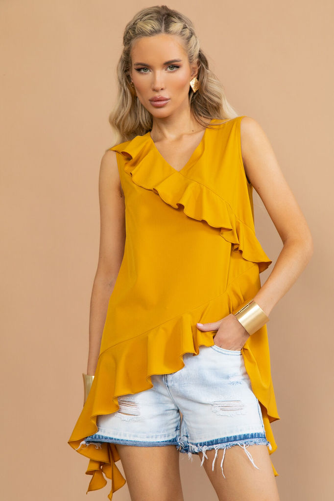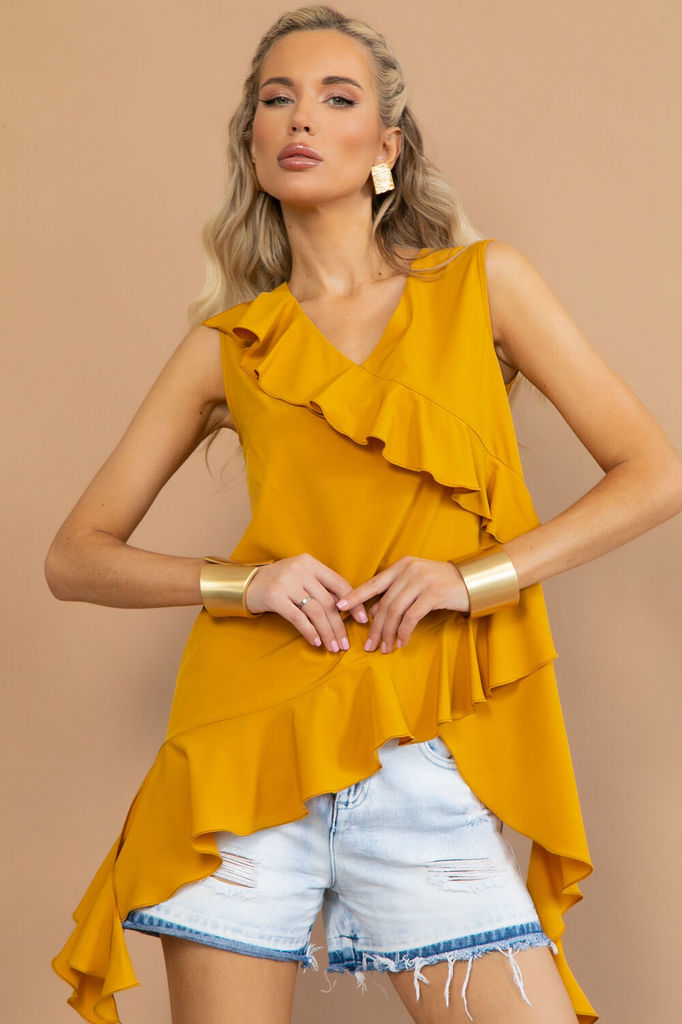 Состав: Хлопок-100%; Состав : 100% хлопок Материал : марлевка Цвет : Бежевый Принт : отсутствует Силуэт : свободный Карманы : Отсутствуют Подкладка : Отсутствует Вид застежки : пуговицы Декоративные э... Показать описаниелементы : воланы, рукава-клеш Длина : 44-61 см, 46-62 см, 48-63 см, 50-64 см, 52-65 см, 54-66 см. Блузка отснята с брюками Б13693-33М, Б13525-19М, Б12685-13 Легкая блуза из натурального хлопка с воланами украсит ваш летний гардероб. С ней можно создать много образов, как повседневных, так и нарядных. Благодаря натуральному составу, материал изделия приятно носить, а также в нем комфортно жаркими летними днями. Декоративные элементы в виде воланов на груди и рукавов-клеш добавляют образу женственности и уникальности. Внимание! Рекомендуем ориентироваться на размерную сетку и выбирать свой привычный размер, согласно размерной таблице. *Допуск отклонения длины при массовом производстве 1-3 см является нормой.