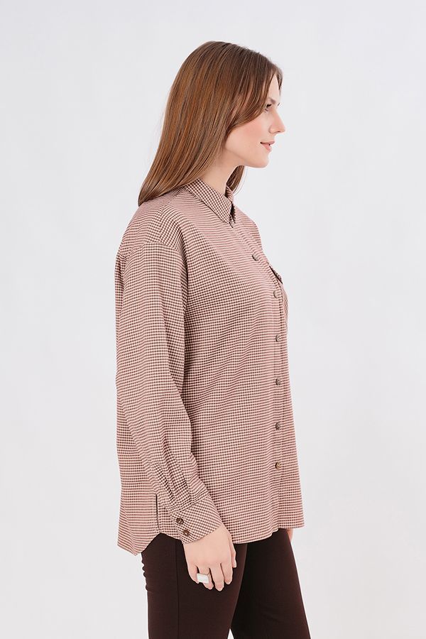 Подробное описание: https://nobbycon.ru/artikul-002r-115.html Сезон: Весна-Осень, Зима. Классическая рубашка свободного силуэта из облегченной костюмной ткани. Застежка на пуговицы, по правой передней половинке, карман с клапаном, по спинке кокетка. В боковых швах разрезы. Длина по спинке 75 см. *Числовые параметры соответствуют размеру 44. Размер модели на фото: 44. Параметры модели:90-64-97. Рост модели на фото: 175 см. Производитель: Черно-Красная Этикетка. Состав ткани: Полиэстер 63%, Вискоза 34%, Эластан 3%. Сезон: Весна-Осень, Зима. Пол: Женский. Силуэт: Свободный. Длина: 75 см. Дизайн ткани: Неявная клетка. Цвет: Бежево-бордовый. Тэги: * Весна - Осень. * Зима. * Рубашка. * Мелкая клеточка. * Бежево-бордовый.