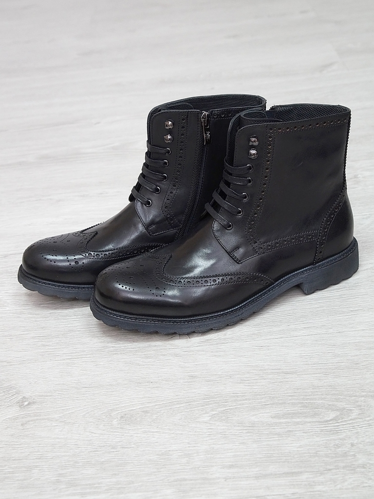 Артикул: 0260 -18M0328-1. Сезон: Демисезон. Материал верха: Натуральная кожа. Материал подкладки: Натуральная кожа. Основной цвет: Черный. Бренд: IZZY. Производство: Китай. Ботинки мужские из натураль... Показать описаниеной кожи - это классическая модель обуви, которая сочетает в себе стиль и комфорт. Натуральная кожа обеспечивает высокое качество и долговечность изделия, а также позволяет ногам "дышать". Благодаря своему дизайну и качеству материалов, эти ботинки подойдут как для повседневной носки, так и для особых случаев. Удобная посадка и прочная подошва делают их отличным выбором для активного образа жизни. Независимо от того, идет ли речь о деловой встрече или прогулке по городу, эти ботинки будут надежным и стильным дополнением к вашему образу. Интернет-магазин ОБУВЬ - ПЛЮС. Ботинки из натуральной кожи также отличаются от других материалов своей способностью адаптироваться к форме ноги со временем, обеспечивая идеальную посадку. Это делает их не только комфортными, но и поддерживающими правильное положение стопы и снижающими риск различных травм. Благодаря своей прочности и износостойкости, ботинки из натуральной кожи могут служить долгие годы, сохраняя свой первоначальный вид и качество. Кроме того, такие ботинки хорошо защищают ноги от влаги и холода, благодаря чему они подходят для носки в любое время года. Высокое качество материалов и тщательная обработка делают ботинки из натуральной кожи устойчивыми к различным воздействиям, таким как царапины, загрязнения и потертости. Наконец, классический дизайн таких ботинок делает их универсальными и подходящими к любому стилю одежды. Благодаря своей элегантности и строгости, они могут быть успешно сочетаемы как с деловыми костюмами, так и с повседневной одеждой. Таким образом, ботинки из натуральной кожи являются не только практичным и комфортным вариантом обуви, но и стильным аксессуаром, который подчеркнет ваш безупречный вкус и уверенность в себе. Подробное описание: https://obuv-tut2000.ru/magazin/product/botinki-muzhskie-demisezonnye-32