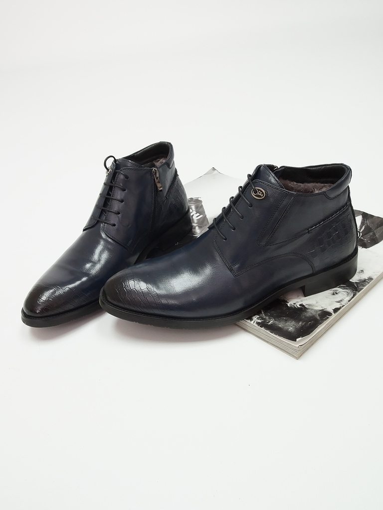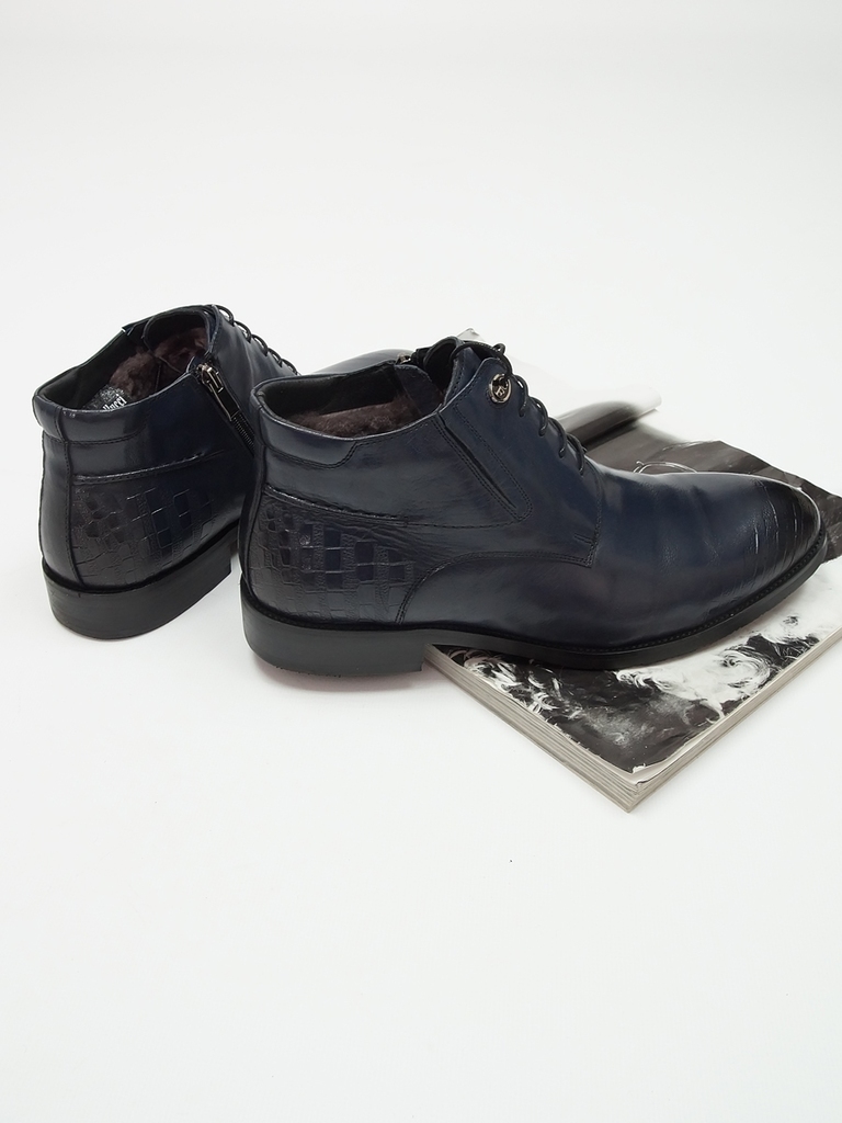 Артикул: C812. Сезон: Зима. Материал верха: Натуральная кожа. Материал подкладки: Натуральный мех (полный). Основной цвет: Синий. Бренд: FRANCO BELLUCCI. Производство: Китай. Мужская обувь из натураль... Показать описаниеной кожи - это результат совершенного сочетания стиля, качества и комфорта. Эти обувные изделия являются воплощением элегантности и надежности, вместе с тем подчеркивая индивидуальность и характер своего обладателя. Каждая пара обуви изготавливается с особой тщательностью и заботой, используя только лучшие образцы натуральной кожи. Этот материал придает обуви неповторимые текстуры и отличается прочностью, надежностью и долговечностью. Благодаря использованию натуральной кожи, обувь подстраивается по форме ноги, обеспечивая максимальную посадку и комфорт. Стилистическое многообразие мужской обуви из натуральной кожи позволяет каждому мужчине найти идеальную пару, соответствующую его индивидуальному стилю и предпочтениям. Будь то классические лоферы, элегантные офисные туфли, стильные ботинки или спортивные кроссовки, каждая модель выдержана в современных тенденциях и сочетает в себе умеренную элегантность и функциональность. Кроме того, мужская обувь из натуральной кожи - это инвестиция в качество. Сочетание высококлассных материалов и мастерского исполнения делает эти изделия особенно долговечными. Правильный уход и регулярное обслуживание поддерживают их первоначальную красоту и гарантируют долгое время использования. Независимо от повода или места, мужская обувь из натуральной кожи является надежным и стильным выбором для мужчин, ценящих качество и элегантность. Она подчеркнет ваш характер и индивидуальность, доставляя удовольствие от ношения и вызывая восхищение окружающих своим утонченным исполнением и безупречным внешним видом. Подробное описание: https://obuv-tut2000.ru/magazin/product/botinki-muzhskie-zimnie-204