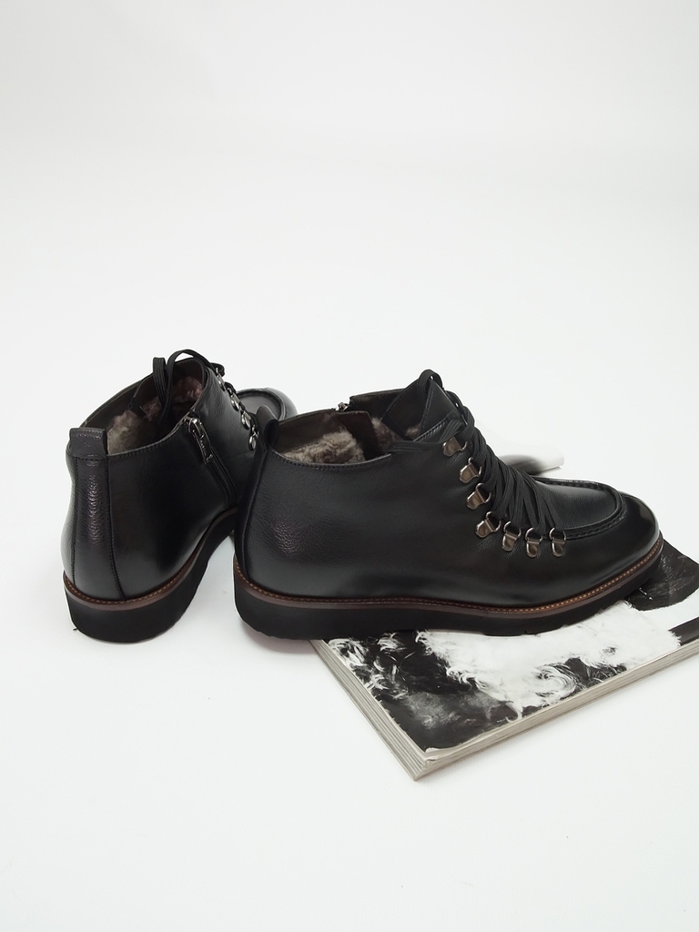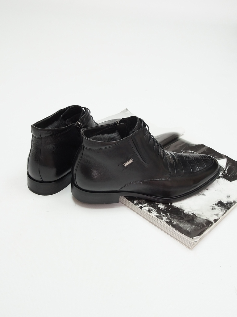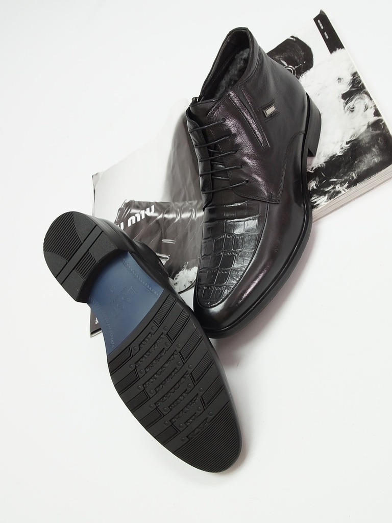 Артикул: C805. Сезон: Зима. Материал верха: Натуральная кожа. Материал подкладки: Натуральный мех (полный). Основной цвет: Черный. Бренд: FRANCO BELLUCCI. Производство: Китай. Мужская обувь из натурал... Показать описаниеьной кожи - это результат совершенного сочетания стиля, качества и комфорта. Эти обувные изделия являются воплощением элегантности и надежности, вместе с тем подчеркивая индивидуальность и характер своего обладателя. Каждая пара обуви изготавливается с особой тщательностью и заботой, используя только лучшие образцы натуральной кожи. Этот материал придает обуви неповторимые текстуры и отличается прочностью, надежностью и долговечностью. Благодаря использованию натуральной кожи, обувь подстраивается по форме ноги, обеспечивая максимальную посадку и комфорт. Стилистическое многообразие мужской обуви из натуральной кожи позволяет каждому мужчине найти идеальную пару, соответствующую его индивидуальному стилю и предпочтениям. Будь то классические лоферы, элегантные офисные туфли, стильные ботинки или спортивные кроссовки, каждая модель выдержана в современных тенденциях и сочетает в себе умеренную элегантность и функциональность. Кроме того, мужская обувь из натуральной кожи - это инвестиция в качество. Сочетание высококлассных материалов и мастерского исполнения делает эти изделия особенно долговечными. Правильный уход и регулярное обслуживание поддерживают их первоначальную красоту и гарантируют долгое время использования. Независимо от повода или места, мужская обувь из натуральной кожи является надежным и стильным выбором для мужчин, ценящих качество и элегантность. Она подчеркнет ваш характер и индивидуальность, доставляя удовольствие от ношения и вызывая восхищение окружающих своим утонченным исполнением и безупречным внешним видом. Подробное описание: https://obuv-tut2000.ru/magazin/product/botinki-muzhskie-zimnie-franco-belucci-c805-7