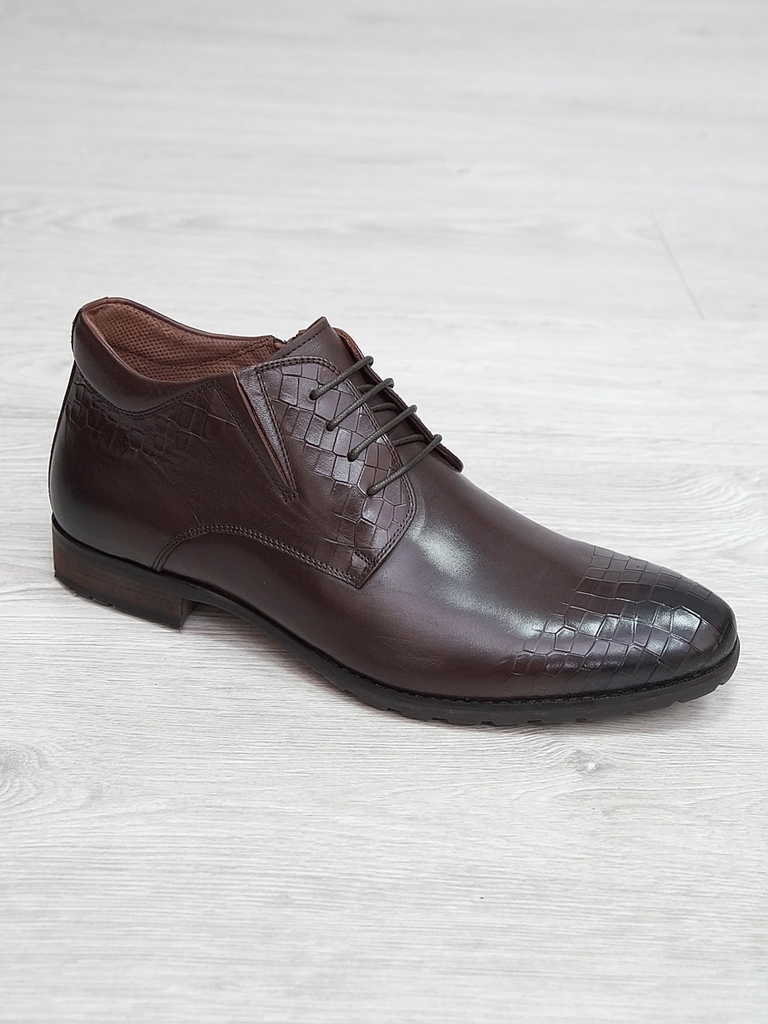 Артикул: 0257 -18M0038-1. Сезон: Демисезон. Материал верха: Натуральная кожа. Материал подкладки: Натуральная кожа. Основной цвет: Коричневый. Бренд: IZZY. Производство: Китай. Ботинки мужские из нату... Показать описаниеральной кожи - это классическая модель обуви, которая сочетает в себе стиль и комфорт. Натуральная кожа обеспечивает высокое качество и долговечность изделия, а также позволяет ногам "дышать". Благодаря своему дизайну и качеству материалов, эти ботинки подойдут как для повседневной носки, так и для особых случаев. Удобная посадка и прочная подошва делают их отличным выбором для активного образа жизни. Независимо от того, идет ли речь о деловой встрече или прогулке по городу, эти ботинки будут надежным и стильным дополнением к вашему образу. Интернет-магазин ОБУВЬ - ПЛЮС. Ботинки из натуральной кожи также отличаются от других материалов своей способностью адаптироваться к форме ноги со временем, обеспечивая идеальную посадку. Это делает их не только комфортными, но и поддерживающими правильное положение стопы и снижающими риск различных травм. Благодаря своей прочности и износостойкости, ботинки из натуральной кожи могут служить долгие годы, сохраняя свой первоначальный вид и качество. Кроме того, такие ботинки хорошо защищают ноги от влаги и холода, благодаря чему они подходят для носки в любое время года. Высокое качество материалов и тщательная обработка делают ботинки из натуральной кожи устойчивыми к различным воздействиям, таким как царапины, загрязнения и потертости. Наконец, классический дизайн таких ботинок делает их универсальными и подходящими к любому стилю одежды. Благодаря своей элегантности и строгости, они могут быть успешно сочетаемы как с деловыми костюмами, так и с повседневной одеждой. Таким образом, ботинки из натуральной кожи являются не только практичным и комфортным вариантом обуви, но и стильным аксессуаром, который подчеркнет ваш безупречный вкус и уверенность в себе. Подробное описание: https://obuv-tut2000.ru/magazin/product/botinki-muzhskie-demisezonnye-53