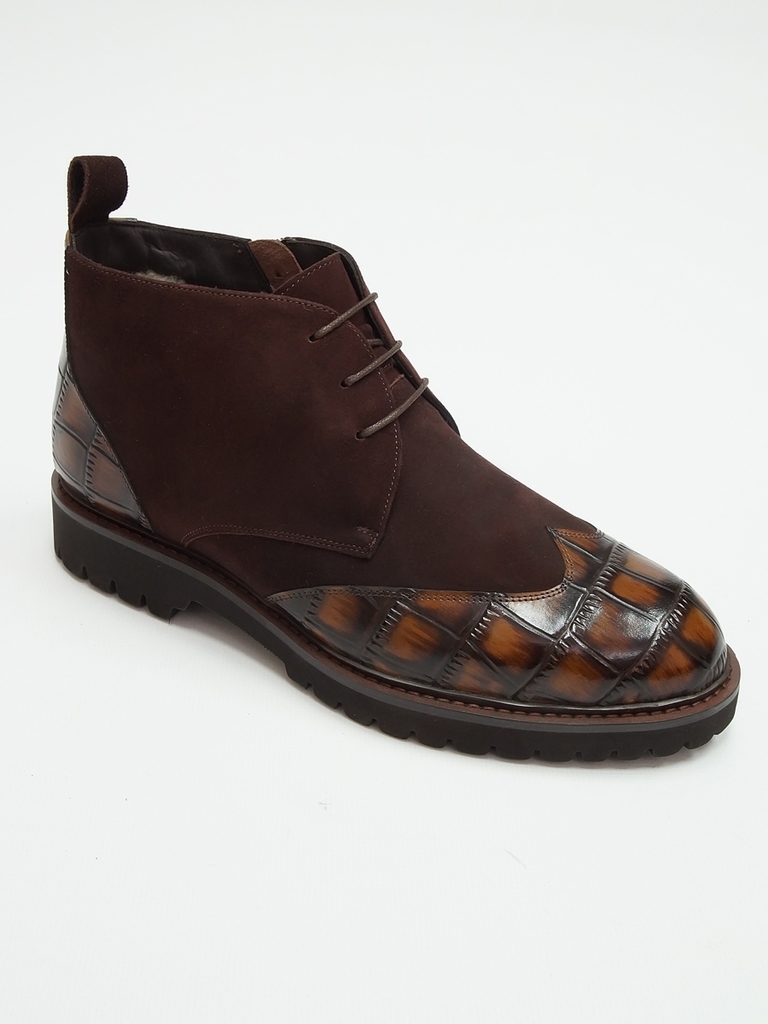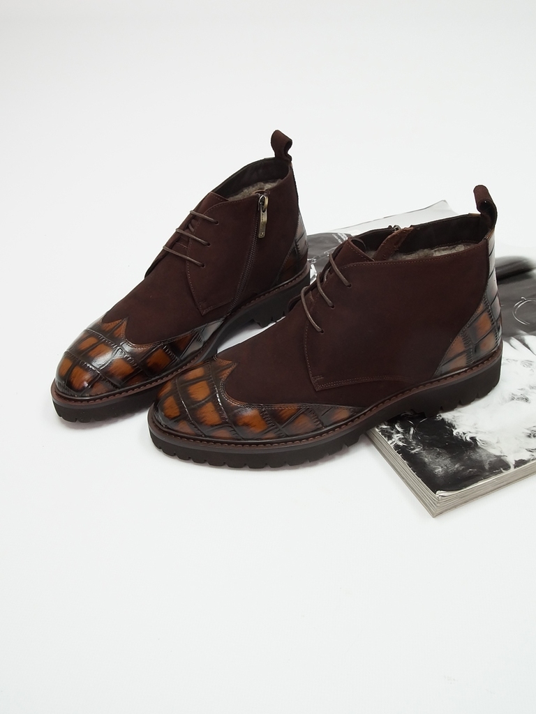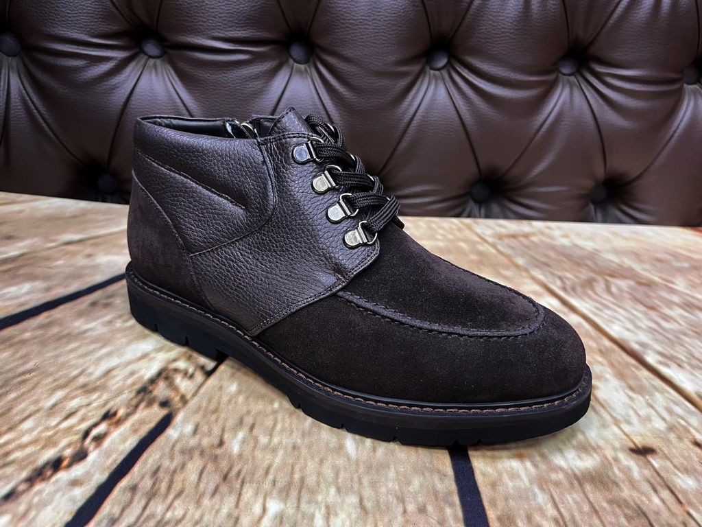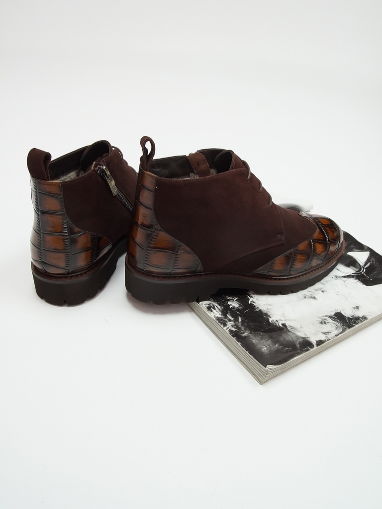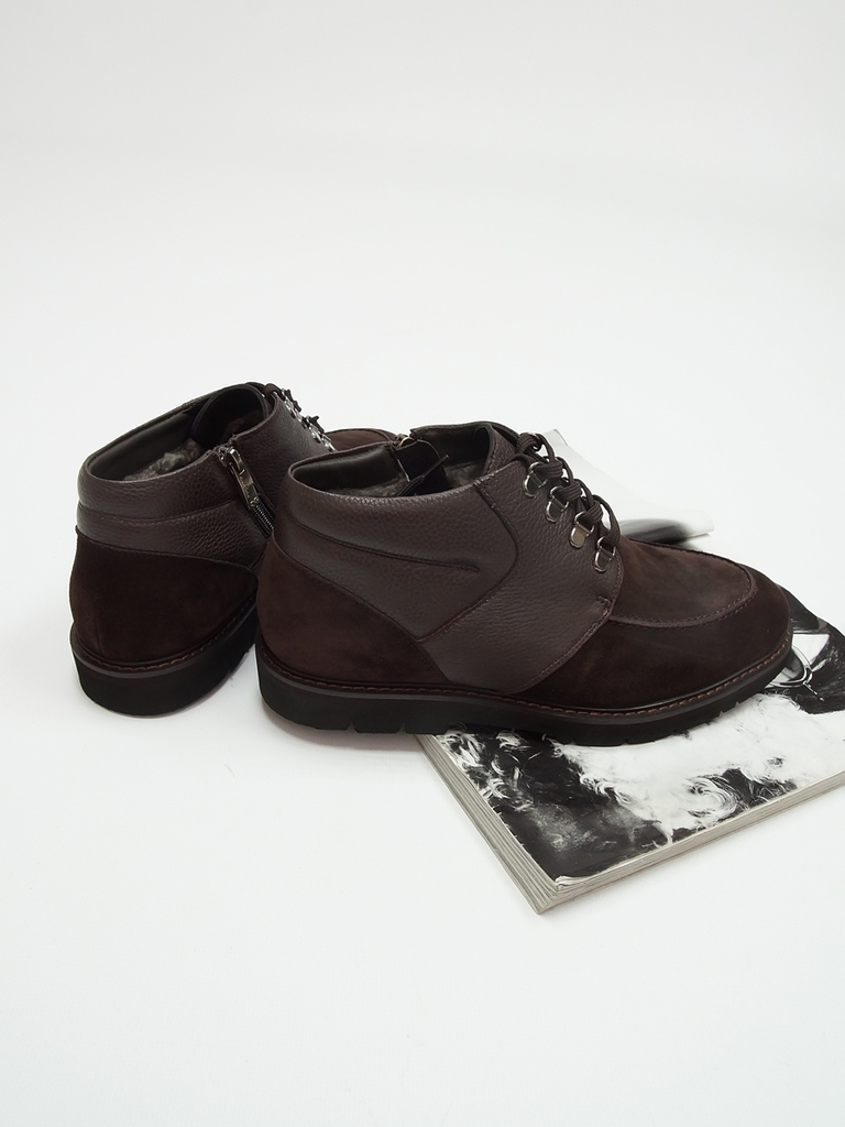 Артикул: 5426X-928B-M. Сезон: Зима. Материал верха: Натуральная кожа, Натуральная замша. Материал подкладки: Натуральный мех (полный). Основной цвет: Коричневый. Бренд: GRAND GUDINI. Производство: Кит... Показать описаниеай. Мужская обувь из натуральной кожи и замши - это результат совершенного сочетания стиля, качества и комфорта. Эти обувные изделия являются воплощением элегантности и надежности, вместе с тем подчеркивая индивидуальность и характер своего обладателя. Каждая пара обуви изготавливается с особой тщательностью и заботой, используя только лучшие образцы натуральной кожи и замши. Этот материал придает обуви неповторимые текстуры и отличается прочностью, надежностью и долговечностью. Благодаря использованию натуральной кожи, обувь подстраивается по форме ноги, обеспечивая максимальную посадку и комфорт. Стилистическое многообразие мужской обуви из натуральной кожи и замши позволяет каждому мужчине найти идеальную пару, соответствующую его индивидуальному стилю и предпочтениям. Будь то классические лоферы, элегантные офисные туфли, стильные ботинки или спортивные кроссовки, каждая модель выдержана в современных тенденциях и сочетает в себе умеренную элегантность и функциональность. Кроме того, мужская обувь из натуральной кожи и замши - это инвестиция в качество. Сочетание высококлассных материалов и мастерского исполнения делает эти изделия особенно долговечными. Правильный уход и регулярное обслуживание поддерживают их первоначальную красоту и гарантируют долгое время использования. Независимо от повода или места, мужская обувь из натуральной кожи и замши является надежным и стильным выбором для мужчин, ценящих качество и элегантность. Она подчеркнет ваш характер и индивидуальность, доставляя удовольствие от ношения и вызывая восхищение окружающих своим утонченным исполнением и безупречным внешним видом. Подробное описание: https://obuv-tut2000.ru/magazin/product/botinki-muzhskie-zimnie-grand-gudini-5426x-928b-m