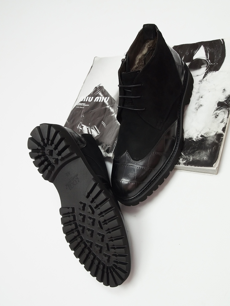 Артикул: 5426X-928D-M. Сезон: Зима. Материал верха: Натуральная кожа, Натуральная замша. Материал подкладки: Натуральный мех (полный). Основной цвет: Черный. Бренд: GRAND GUDINI. Производство: Китай. ... Показать описаниеМужская обувь из натуральной кожи и замши - это результат совершенного сочетания стиля, качества и комфорта. Эти обувные изделия являются воплощением элегантности и надежности, вместе с тем подчеркивая индивидуальность и характер своего обладателя. Каждая пара обуви изготавливается с особой тщательностью и заботой, используя только лучшие образцы натуральной кожи и замши. Этот материал придает обуви неповторимые текстуры и отличается прочностью, надежностью и долговечностью. Благодаря использованию натуральной кожи, обувь подстраивается по форме ноги, обеспечивая максимальную посадку и комфорт. Стилистическое многообразие мужской обуви из натуральной кожи и замши позволяет каждому мужчине найти идеальную пару, соответствующую его индивидуальному стилю и предпочтениям. Будь то классические лоферы, элегантные офисные туфли, стильные ботинки или спортивные кроссовки, каждая модель выдержана в современных тенденциях и сочетает в себе умеренную элегантность и функциональность. Кроме того, мужская обувь из натуральной кожи и замши - это инвестиция в качество. Сочетание высококлассных материалов и мастерского исполнения делает эти изделия особенно долговечными. Правильный уход и регулярное обслуживание поддерживают их первоначальную красоту и гарантируют долгое время использования. Независимо от повода или места, мужская обувь из натуральной кожи и замши является надежным и стильным выбором для мужчин, ценящих качество и элегантность. Она подчеркнет ваш характер и индивидуальность, доставляя удовольствие от ношения и вызывая восхищение окружающих своим утонченным исполнением и безупречным внешним видом. Подробное описание: https://obuv-tut2000.ru/magazin/product/botinki-muzhskie-zimnie-grand-gudini-5426x-928d-m