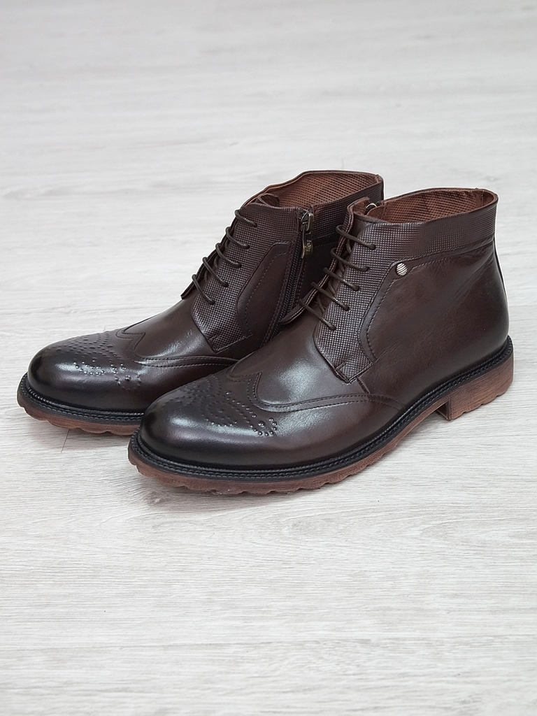 Артикул: 0263 -72708. Сезон: Демисезон. Материал верха: Натуральная кожа. Материал подкладки: Натуральная кожа. Основной цвет: Коричневый. Бренд: IZZY. Производство: Китай. Ботинки мужские из натураль... Показать описаниеной кожи - это классическая модель обуви, которая сочетает в себе стиль и комфорт. Натуральная кожа обеспечивает высокое качество и долговечность изделия, а также позволяет ногам "дышать". Благодаря своему дизайну и качеству материалов, эти ботинки подойдут как для повседневной носки, так и для особых случаев. Удобная посадка и прочная подошва делают их отличным выбором для активного образа жизни. Независимо от того, идет ли речь о деловой встрече или прогулке по городу, эти ботинки будут надежным и стильным дополнением к вашему образу. Интернет-магазин ОБУВЬ - ПЛЮС. Ботинки из натуральной кожи также отличаются от других материалов своей способностью адаптироваться к форме ноги со временем, обеспечивая идеальную посадку. Это делает их не только комфортными, но и поддерживающими правильное положение стопы и снижающими риск различных травм. Благодаря своей прочности и износостойкости, ботинки из натуральной кожи могут служить долгие годы, сохраняя свой первоначальный вид и качество. Кроме того, такие ботинки хорошо защищают ноги от влаги и холода, благодаря чему они подходят для носки в любое время года. Высокое качество материалов и тщательная обработка делают ботинки из натуральной кожи устойчивыми к различным воздействиям, таким как царапины, загрязнения и потертости. Наконец, классический дизайн таких ботинок делает их универсальными и подходящими к любому стилю одежды. Благодаря своей элегантности и строгости, они могут быть успешно сочетаемы как с деловыми костюмами, так и с повседневной одеждой. Таким образом, ботинки из натуральной кожи являются не только практичным и комфортным вариантом обуви, но и стильным аксессуаром, который подчеркнет ваш безупречный вкус и уверенность в себе. Подробное описание: https://obuv-tut2000.ru/magazin/product/botinki-muzhskie-demisezonnye-22