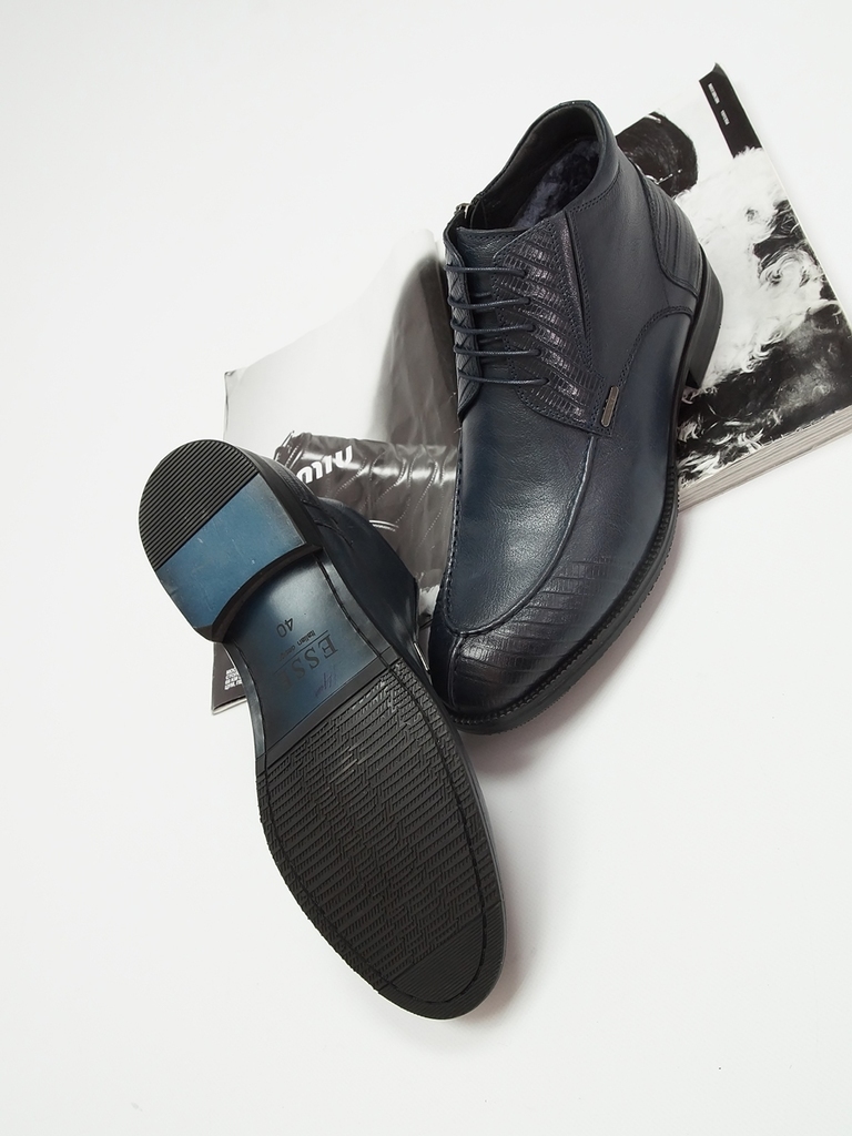 Артикул: 832-6-M420. Сезон: Зима. Материал верха: Натуральная кожа. Материал подкладки: Натуральный мех (евро). Основной цвет: Синий. Бренд: ESSE. Производство: Китай. Зимние кожаные синие мужские бот... Показать описаниеинки — это элегантный и практичный выбор для холодного времени года, обеспечивающий тепло, защиту от влаги и стильный внешний вид. Изготовленные из качественной кожи, они обладают высокой износостойкостью и долговечностью, а насыщенный синий цвет добавляет образу индивидуальности и современности. Такие ботинки обычно оснащены утеплителем и антискользящей подошвой, что обеспечивает комфорт и безопасность на зимних улицах. Они отлично сочетаются с классическими брюками, джинсами или утепленными штанами, делая образ не только практичным, но и стильным. Подробное описание: https://obuv-tut2000.ru/magazin/product/botinki-kozhanye-zimnie-esse-832-6m420