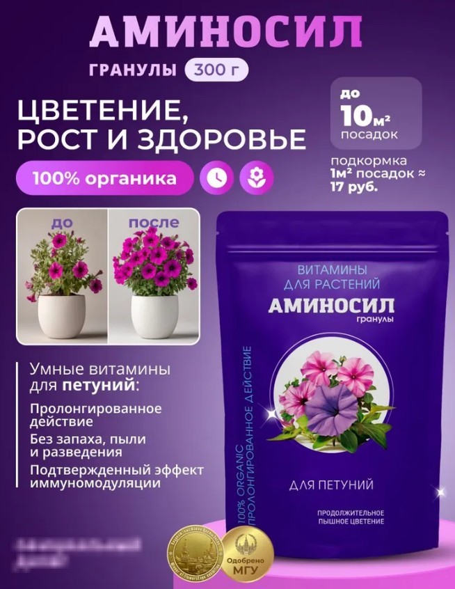 Аминосил (витамины для петуний в гранулах), 300гр /8 Россия НОВИНКА 2025Вопросы по товару