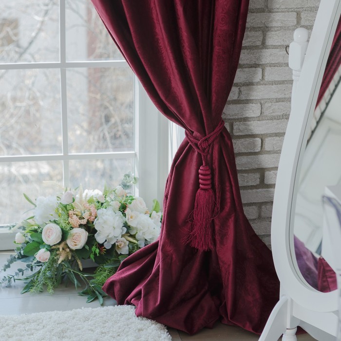 Штора портьерная «Этель», размер 145?270 см, цвет валенсия вишнёвыйШтора портьерная «Этель», размер 145?270 см, цвет валенсия вишнёвыйШтора портьерная «Этель», размер 145?270 см, цвет валенсия вишнёвый