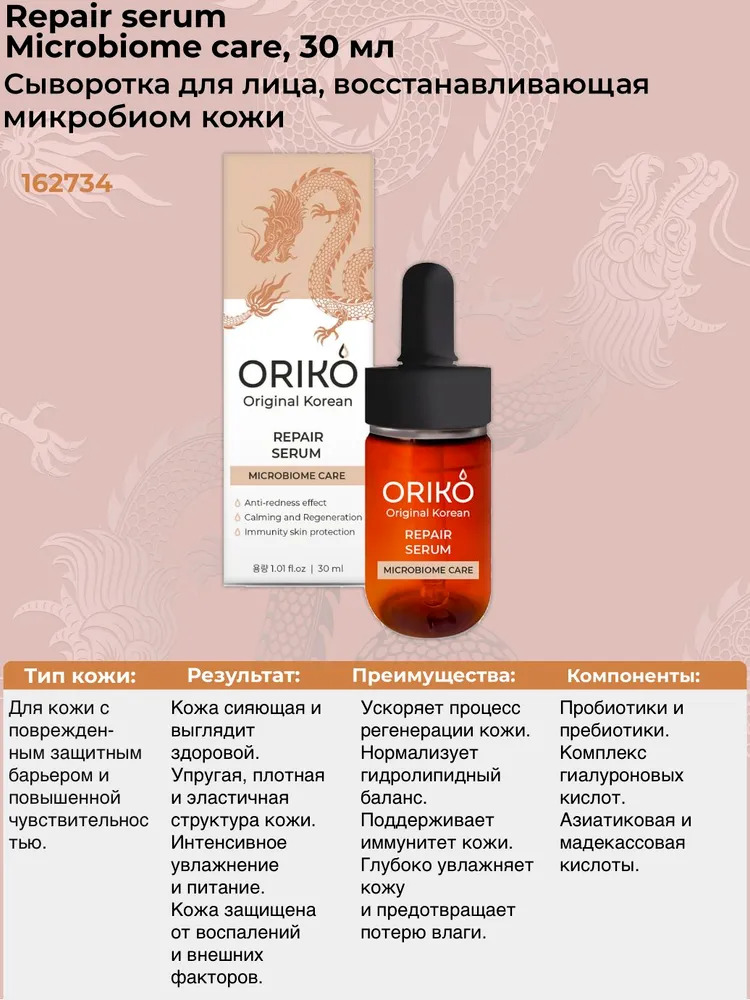 ORIKO Repair serum Microbiome care Сыворотка для лица, восстанавливающая микробиом кожиВопросы по товару