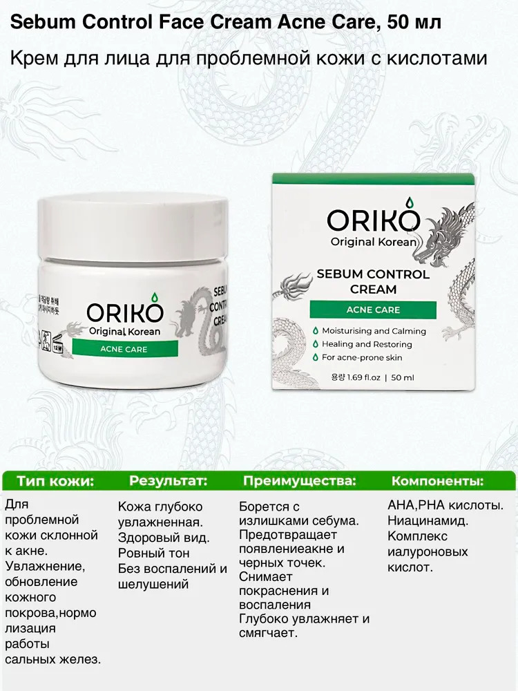 ORIKO Sebum Control Face Cream Acne Care Крем для лица для проблемной кожи с кислотамиВопросы по товару