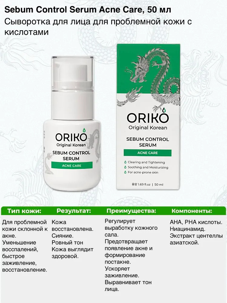 ORIKO Sebum Control Serum Acne Care Сыворотка для лица для проблемной кожи с кислотамиВопросы по товару