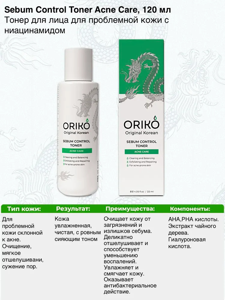 ORIKO Sebum Control Toner Acne Care Тонер для лица для проблемной кожи с ниацинамидомВопросы по товару