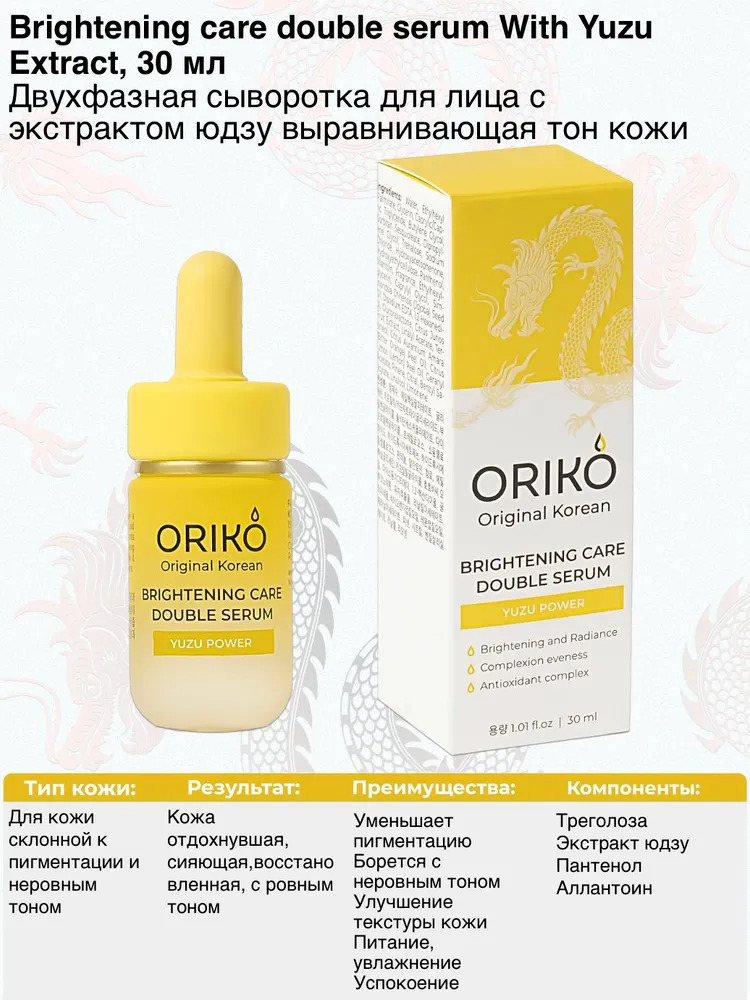 ORIKO Brightening care double serum with yuzu extract Двухфазная сыворотка для лица с экстрактом юдзу, выравнивающая тон кожиВопросы по товару