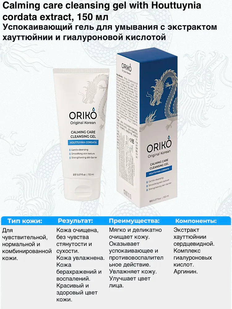 ORIKO Calming care cleansing gel with Houttuynia cordata extract Успокаивающий гель для умывания с экстрактом хауттюйнии и гиалуроновой кислотойВопросы по товару
