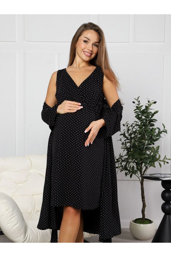 Ж-8.1680 Комплект для беременных (халат, сорочка) черный, горохВопросы по товару