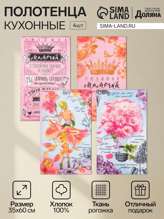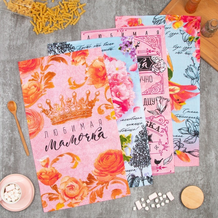 Набор кухонных полотенец «Доляна. Любимая мамочка», 35?60 см - 4 шт., 100% хлопокНабор кухонных полотенец «Доляна. Любимая мамочка», 35?60 см - 4 шт., 100% хлопокНабор кухонных полотенец «Доляна. Любимая мамочка», 35?60 см - 4 шт., 100% хлопок