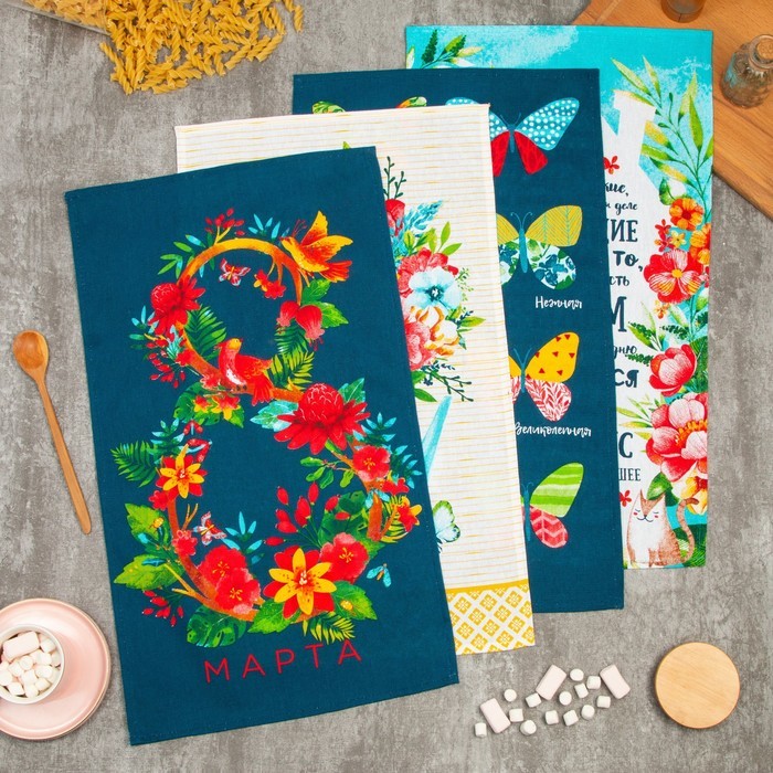 Набор кухонных полотенец Доляна «8 Марта», 35?60 см-4 шт., 100% хлНабор кухонных полотенец Доляна «8 Марта», 35?60 см-4 шт., 100% хлНабор кухонных полотенец Доляна «8 Марта», 35?60 см-4 шт., 100% хл