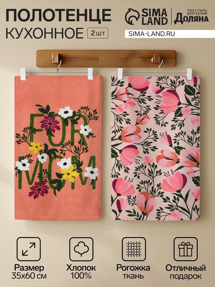 Набор кухонных полотенец Доляна «For mom», 35?60 см-2 шт., 100% хлопок Вопросы по товару