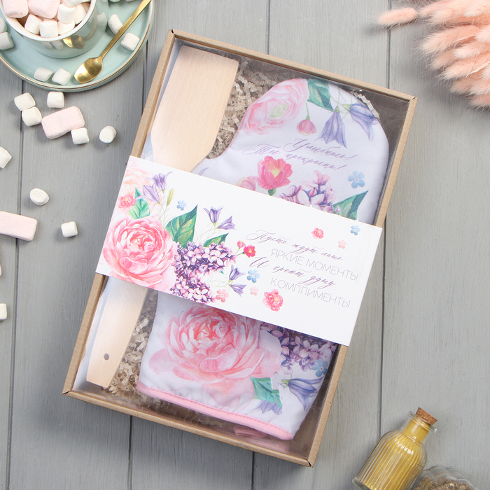 Набор кухонный «Flowers» варежка-прихватка 20?28 см, прихватка 19?19 см,100% хлНабор кухонный «Flowers» варежка-прихватка 20?28 см, прихватка 19?19 см,100% хлНабор кухонный «Flowers» варежка-прихватка 20?28 см, прихватка 19?19 см,100% хл