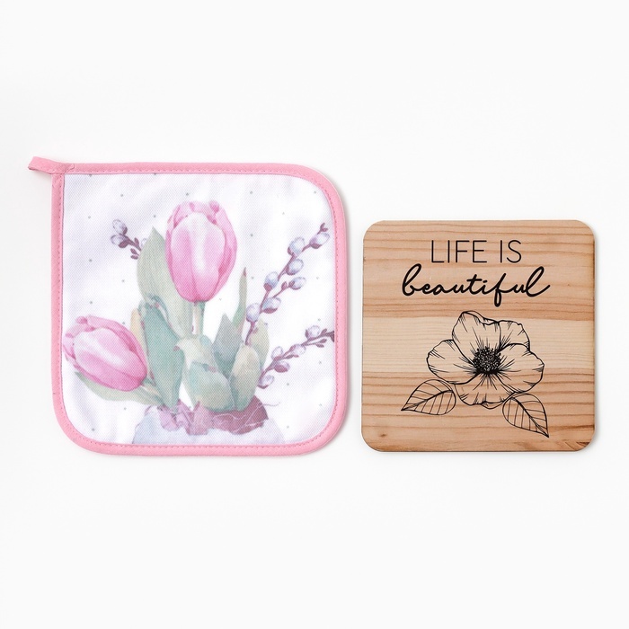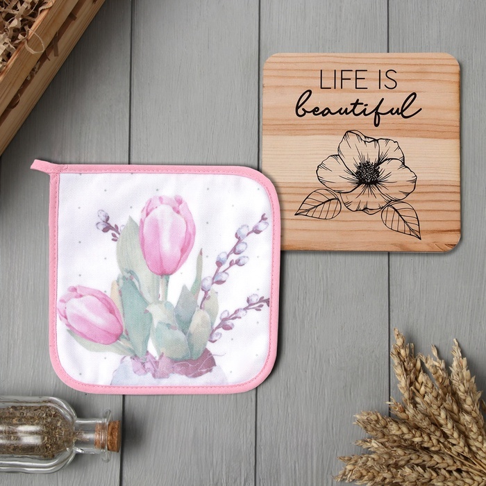 Набор кухонный «Тюльпаны»: прихватка 19?19 см, подставка под горячее