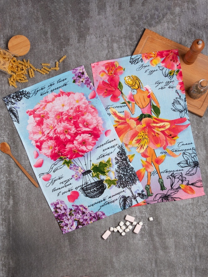 Набор кухонных полотенец «Доляна. Самой любимой», 35?60 см-2 шт., 100% хлопок