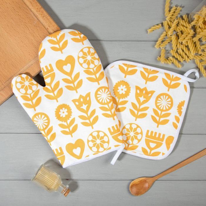 Набор Кухонный Этель «Yellow garden», варежка-прихватка 20?27 см, прихватка 19?19 см, 100% хлопок (МИКС)