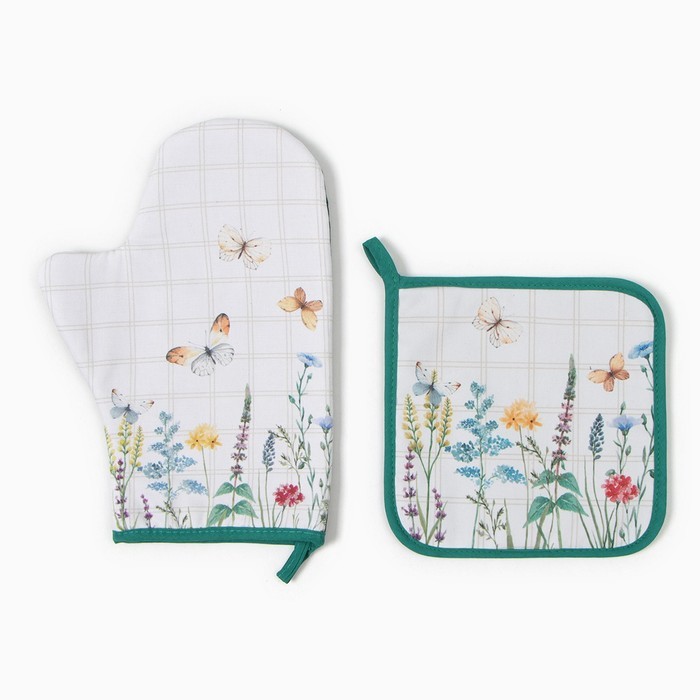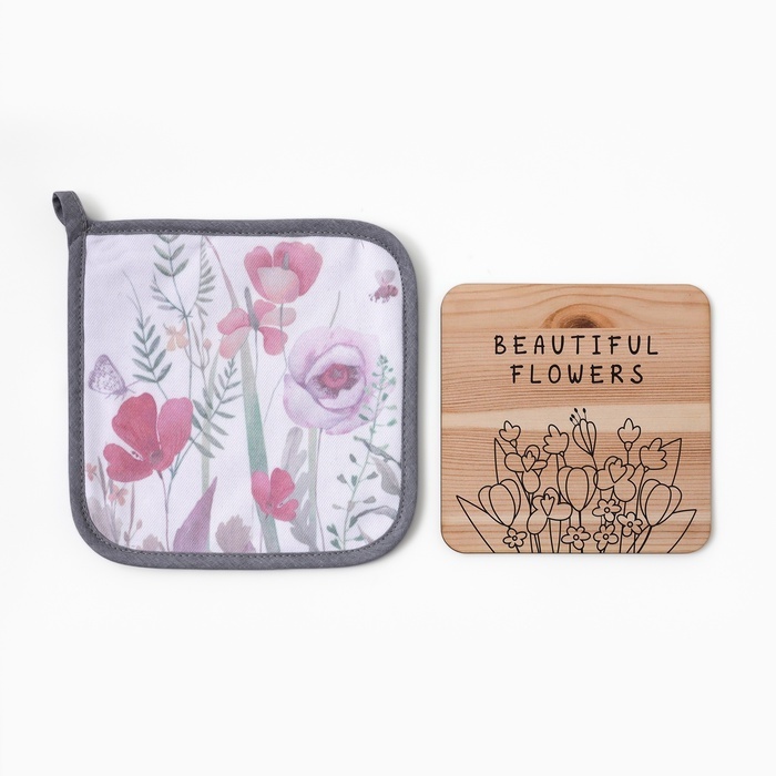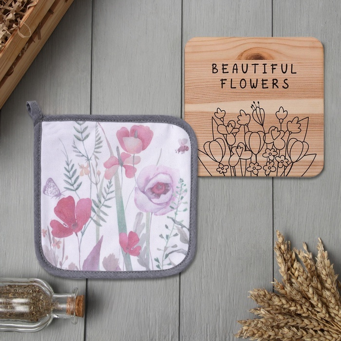 Набор кухонный «Flowers» варежка-прихватка 20?28 см, прихватка 19?19 см,100% хл