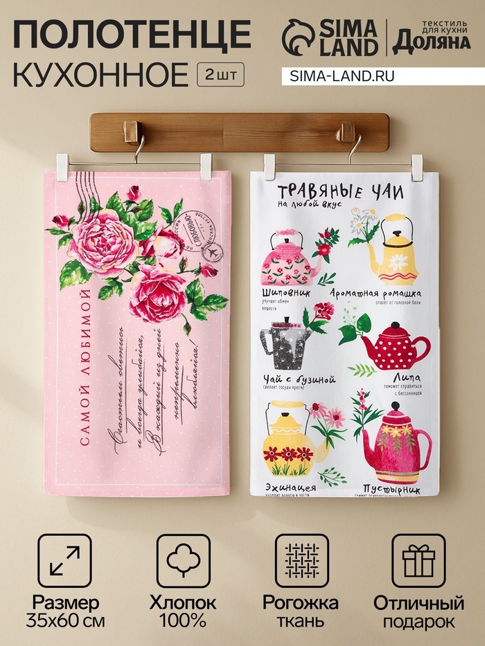 Набор кухонных полотенец «Доляна. Самой любимой», 35?60 см-2 шт., 100% хлопок Вопросы по товару