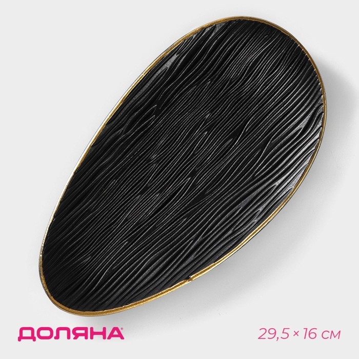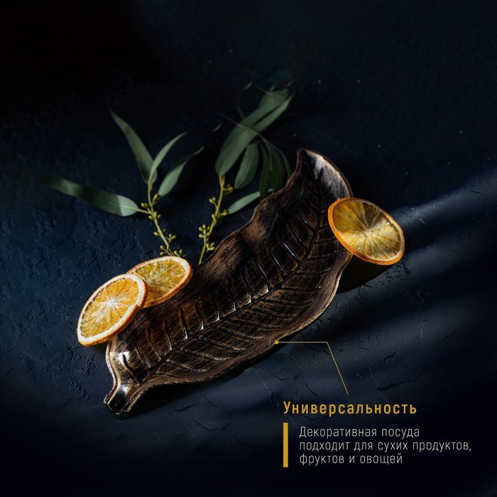 Блюдо для фруктов Доляна «Золотой лист», 38.5?15.5 см, золотое с чёрнымВопросы по товару
