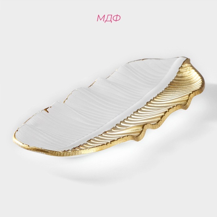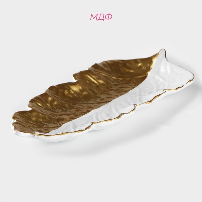 Элегантная тарелка "Лист в золотом" станет выразительным акцентом в вашем интерьере. Изящное сочетание золотистого и белого цветов подчеркивает её цветочно-растительные мотивы, добавляя оттенок роскош... Показать описаниеи вашему столу или полке. Особенности * Фигурная форма и рельефная текстура создают уникальный визуальный эффект. * Основана из качественного МДФ, что обеспечивает долгую службу. * Золотая окантовка добавляет тонкий акцент, превращая её в произведение искусства. * Не подходит для мытья в посудомоечной машине, что подчеркивает необходимость бережного ухода. * Отличный выбор для тех, кто ищет оригинальное украшение для дома или стильный подарок. Изысканный декор для дома Эта тарелка не только украсит ваше пространство, но и привнесет атмосферу утонченности. Её легко интегрировать в любую обстановку благодаря нейтральной палитре с ярким акцентом.
