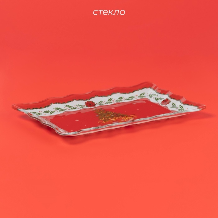 Блюдо Доляна «Новогодняя ель», 30?21 см, овальное, стекло, красноеВопросы по товару