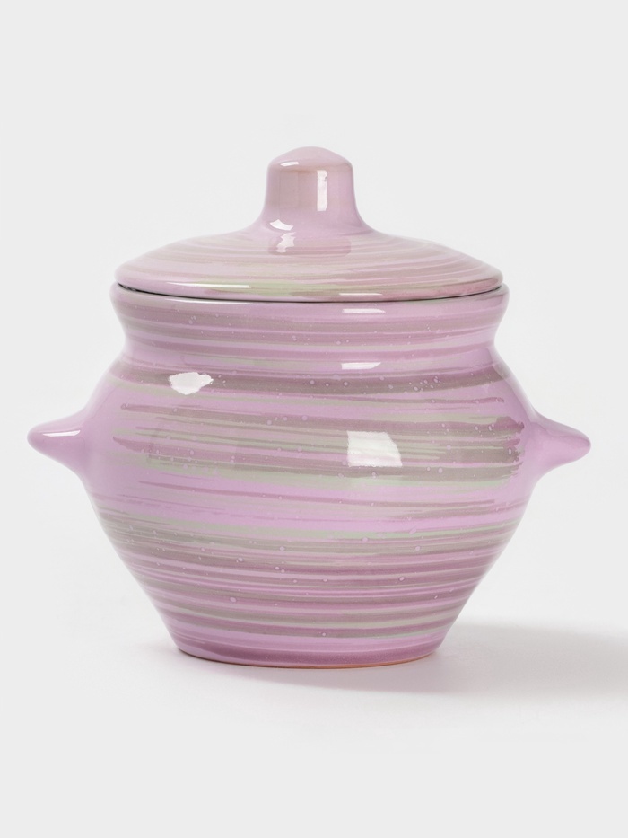 Горшочек для запекания из серии «Лаванда» от «Борисовская керамика» — это нежный акцент на кухне и в духовке. Объём 500 мл идеален для порционного блюда: овощного гратена, творожной запеканки или небо... Показать описаниельшого десерта. Мягкий сиреневый оттенок и тонкий рисунок вдохновлены полевыми травами — без вычурности, но с характером. Особенности * Изготовлен из глазурованной керамики с декоративным рисунком в стиле серии «Лаванда». * Комплектуется керамической крышкой, плотно прилегающей к горшку. * Подходит для использования в СВЧ-печи. * Круглая форма, диаметр 11,5 см — компактна, но удобна для запекания и подачи. * Не рекомендуется мыть в посудомоечной машине — ручной уход сохранит внешний вид дольше. * Сиреневый цвет и натуральная фактура керамики создают атмосферу уюта без излишеств. Для кого этот горшочек Этот горшочек — для тех, кто ищет не просто посуду, а предмет с настроением. Он подойдёт тем, кто готовит для одного, любит нежные оттенки и ценит функциональность без потери эстетики. Отличный выбор в подарок на День матери, 8 Марта или как тёплый сюрприз человеку, для которого ”маленькие блюда — большие радости“. Дополнительно Керамическую посуду можно использовать в духовке и микроволновой печи, но категорически нельзя ставить на открытый огонь и использовать на всех типах плит, а также допускать других резких перепадов температуры.